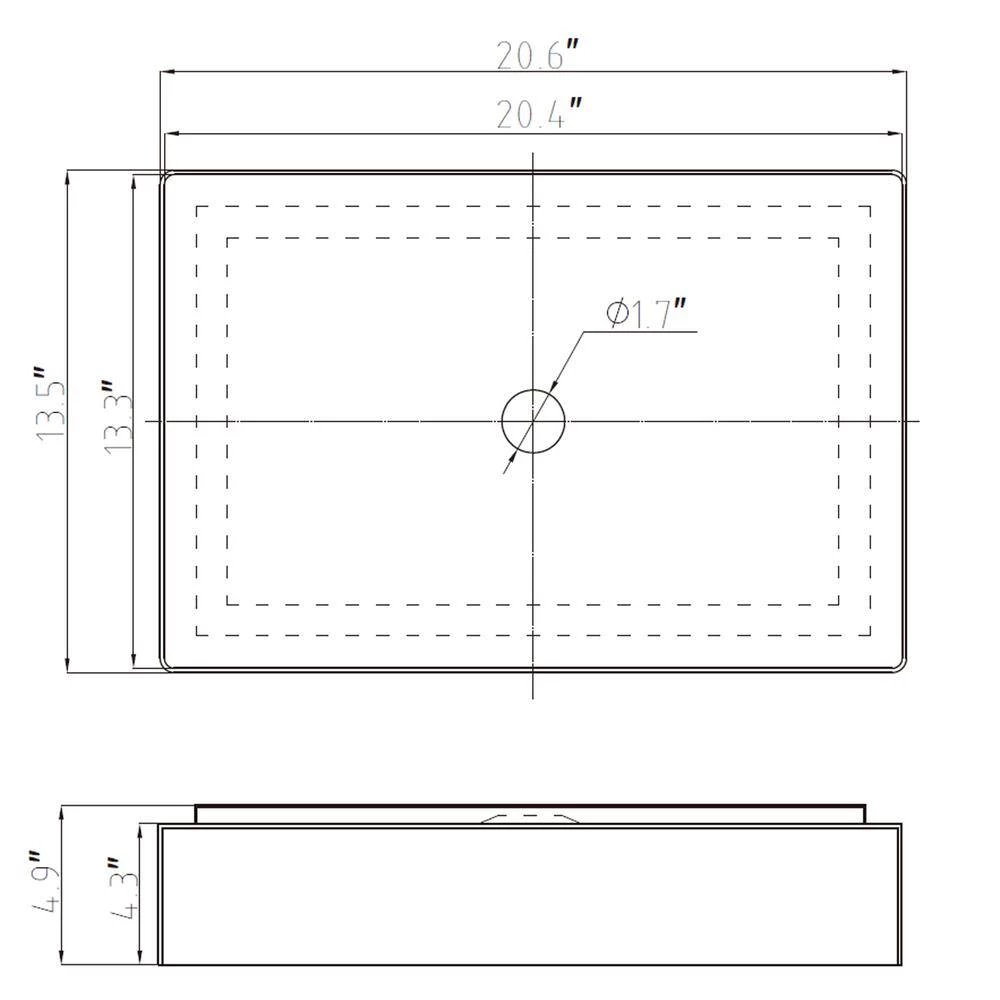 - Sink overall dimension: 20.6 in x 13.5 in x 4.9 in