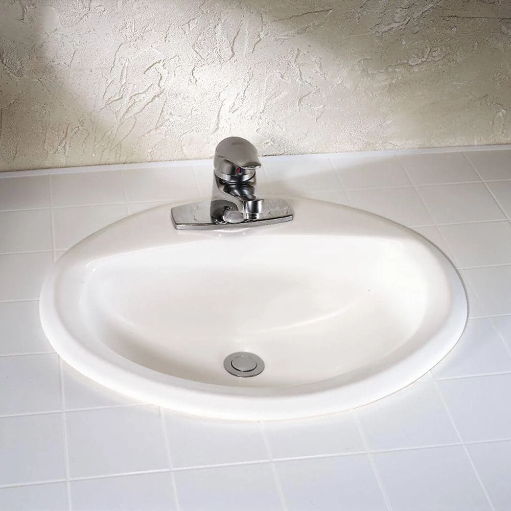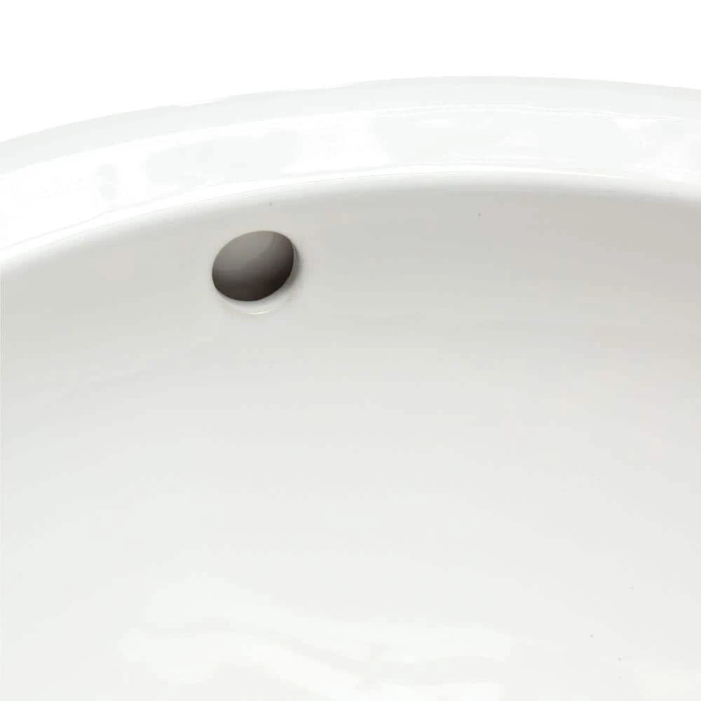 The distinctive Aqualyn oval white bathroom sink is surrounded with tapered edging that transitions smoothly from bowl to counter. This self-rimming drop-in sink is easy to install just by cutting a hole in your countertop, made easier with the included template to guide your saw. The clean white finish meshes with any bathroom decor and blends with any countertop surface, whether it’s granite, laminate, tile, wood or marble.