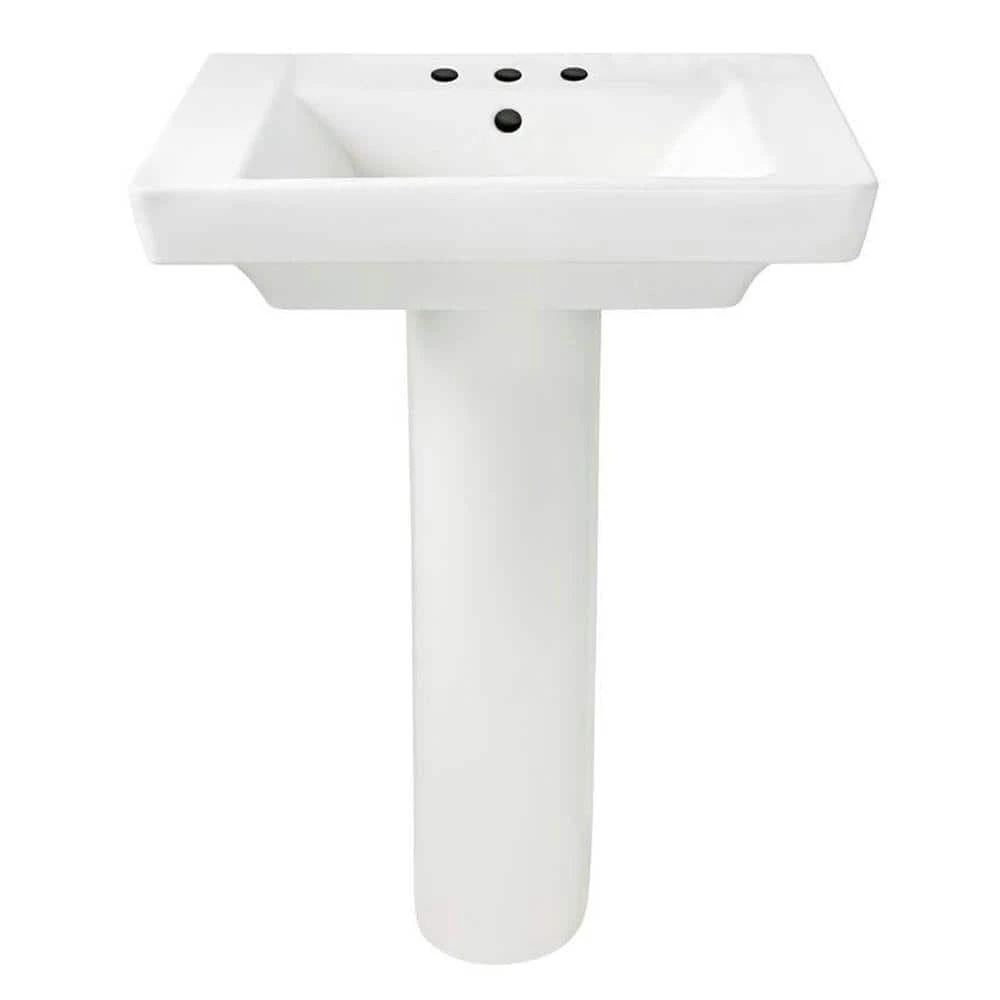 A bold, sophisticated classic. This striking rectangular pedestal sink from the Boulevard Suite brings a touch of uptown flair to any bathroom. It’s ergonomic Right Height design helps prevent back strain. Made from high-gloss, stain-resistant vitreous china. Available with a single hole or 4 in. or 8 in. center faucet holes.