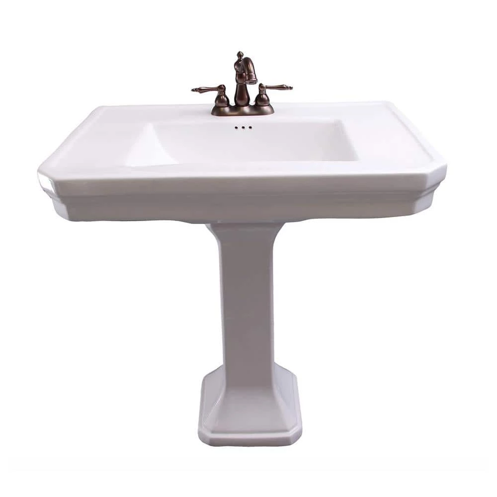 Complete your traditional bathroom in a breathtaking way with the Corbin Pedestal Lavatory from Barclay. Its timelessly decorated rectangular design, large and comfortable interior dimensions, and spacious tap deck combine to produce a memorable and mesmerizing effect. You can furthermore rest assured that Barclays high level of careful and quality craftsmanship ensure that this stunning sink will stand the test of time, gracing your home for many years to come.