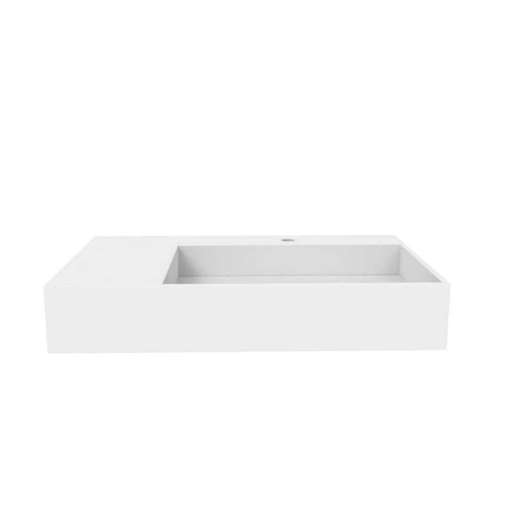 Embrace modern design and feel with this minimalist wall-mounted sink. Simple yet sophisticated, this modern sink is designed to look as if it is floating in your bathroom. Its standard rectangular design with clean lines works well in many bathroom decor configurations and setups. Made with high-quality and durable solid surface material, this sink features a clean and consistent color throughout as well as durable construction to ensure lasting quality and appearance. The surface can be easily cleaned with most non-abrasive cleaning agents. A great accent for any washroom, bathroom, or power room.