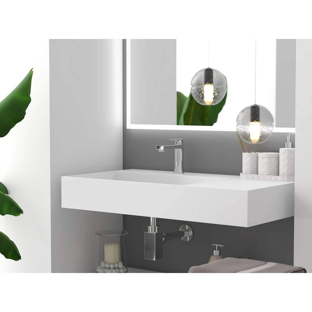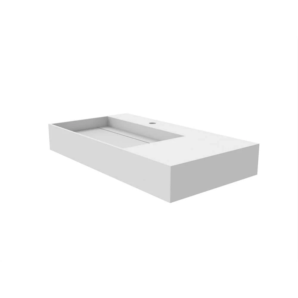 Embrace modern design and feel with this minimalist wall-mounted sink. Simple yet sophisticated, this modern sink is designed to look as if it is floating in your bathroom. Its standard rectangular design with clean lines works well in many bathroom decor configurations and setups. Made with high-quality and durable solid surface material, this sink features a clean and consistent color throughout as well as durable construction to ensure lasting quality and appearance. The surface can be easily cleaned with most non-abrasive cleaning agents. A great accent for any washroom, bathroom, or power room.