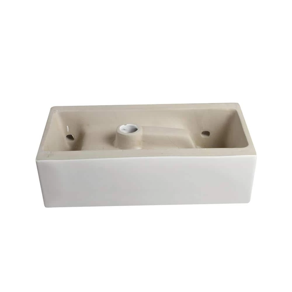 The straight lines of this classic rectangle sink fit in any decor. Its compact size means it can fit most any space. This wall-mounted white porcelain sink has a right-facing rectangular narrow depth design. Installation bolts are included, drain and faucet are not included.