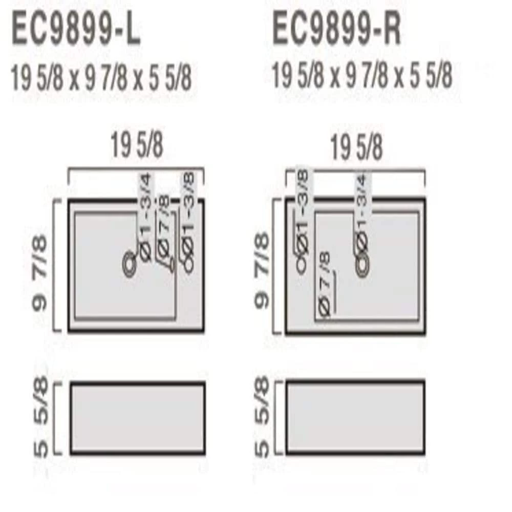 - Outer dimensions 19.625 in. x 9.875 in. x 5.625 in.