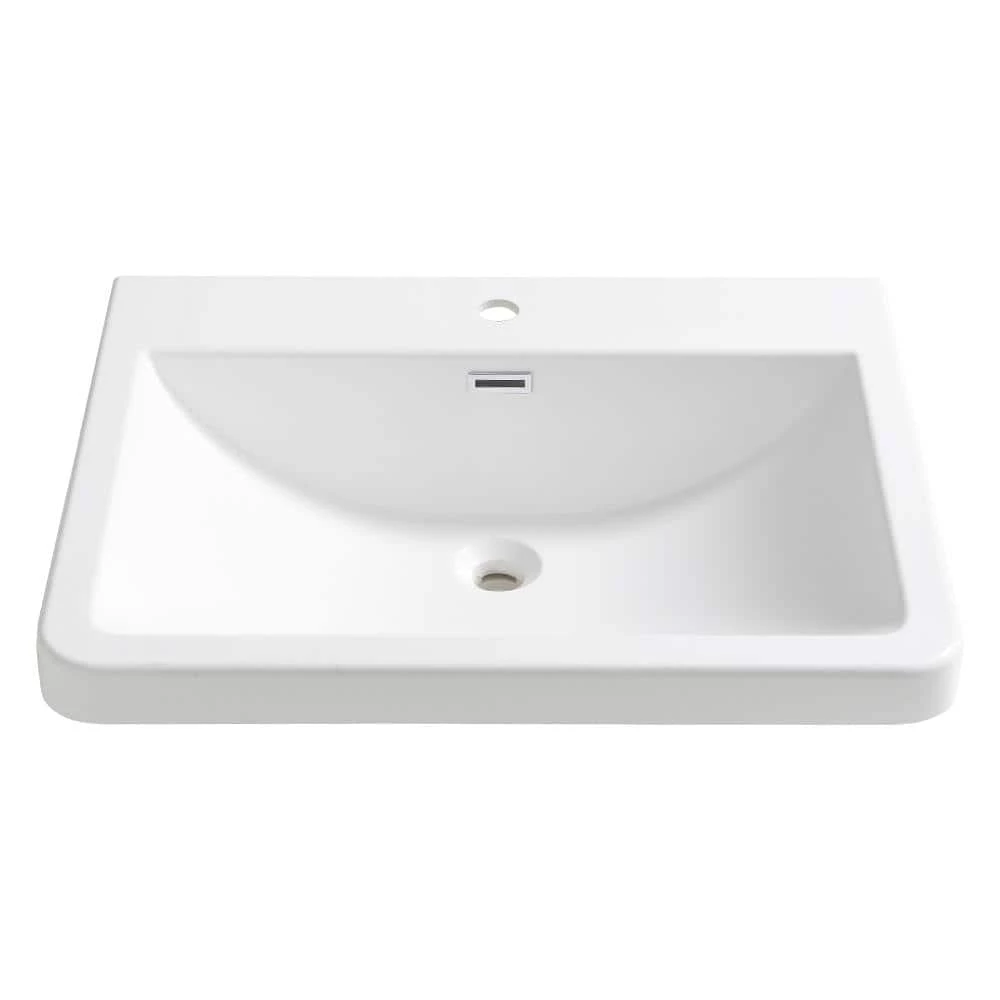 Elegant fixtures like this Fresca Milano integrated sink and countertop truly demonstrate the shape of things to come in bathroom dcor. This gorgeous sink has an oversized basin and provides a clean, bold element that will elevate your bathrooms wow factor. It has a lovely rim around the basin and features a single hole faucet mount. This White integrated sink and countertop measures 26 in. width and is also available in 32 in