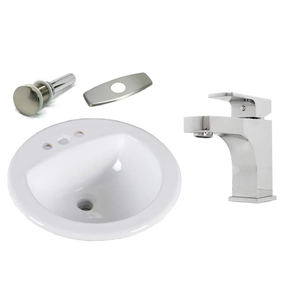 Kingsman Ceramic Topmount Bathroom Sinks and Bathroom Faucet Are Our Most Luxurious Bathroom Combo Ever! Simple and versatile design, easily match with any fixtures in the bathrooms. Neat and clean undermount installation make this sink an affordable luxury Rectangle Shape Sink with Overflow Certified and Listed by cUPC with limited lifetime warranty 19 x 19 x 8 (Exterior) 19″ DIA (Interior) 24 Minimum Cabinet Size Whats Included: – Mounting Hardware – Installation Template”