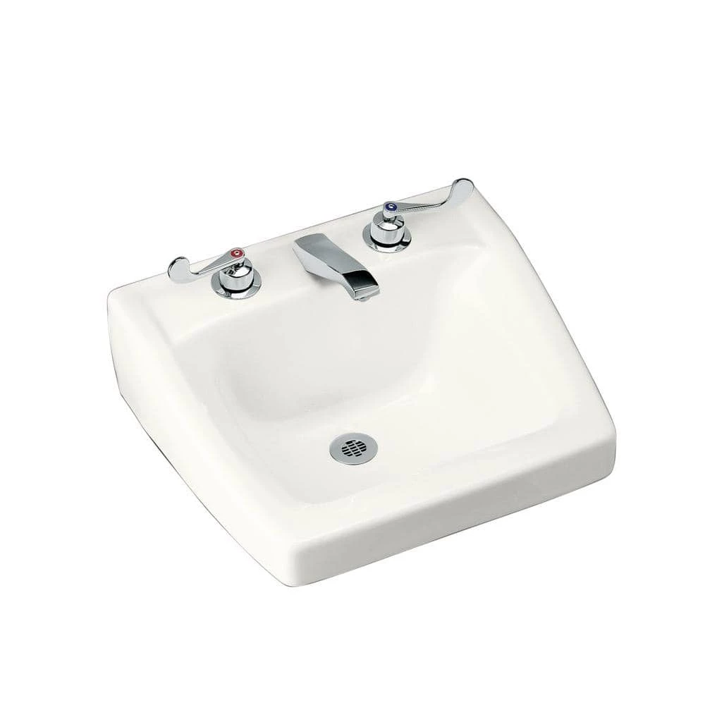 The Kohler Chesapeake Wall-Mount Bathroom Sink in White features durable vitreous china construction that has a hard non-porous finish to help maintain a clean sanitary environment. This ledge-back sink is designed to withstand high-volume usage making this sink ideal for commercial settings. Drilling for a right-hand soap dispenser is provided for your convenience.