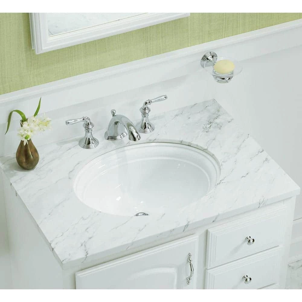 Reminiscent of a bygone era, the Devonshire collection adds old-world elegance to your bathroom. This oval undermount sink features molded edges and subtle curves that blend with your choice of countertop for a clean look.