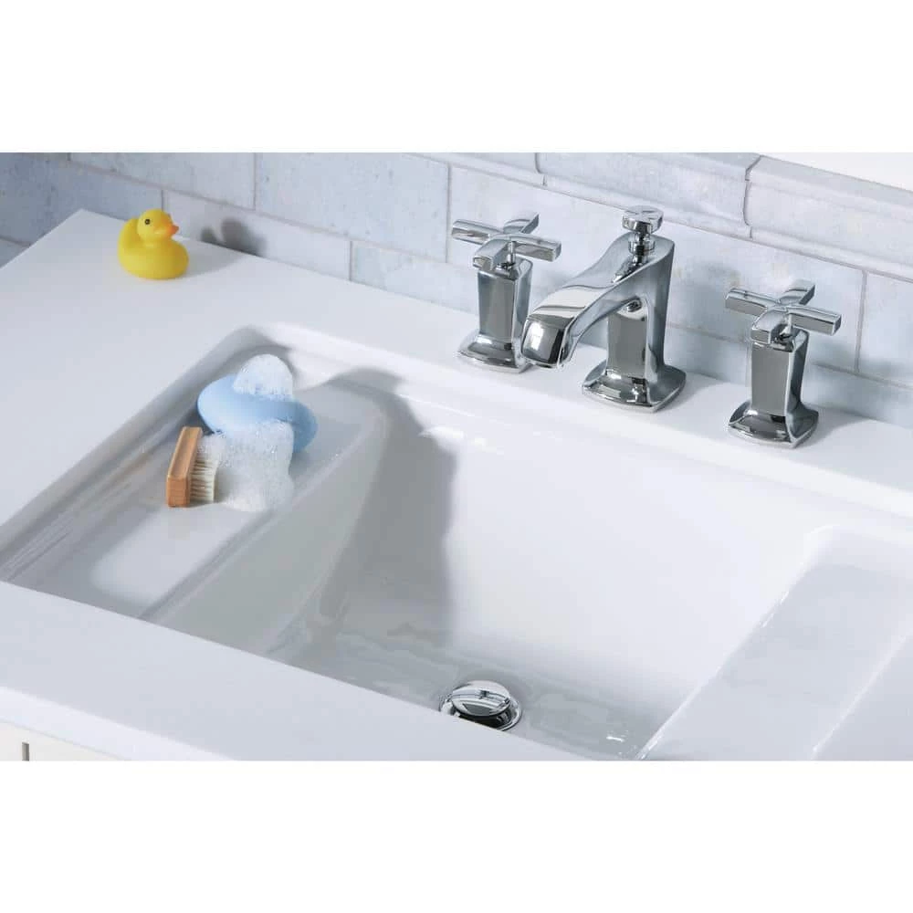 The unique geometry of Ledges creates a look that is modern and functional. Wet surface ledges flank both sides of this gently sloped basin, providing extra work space and storage for everyday items like toothbrushes and contact lenses.