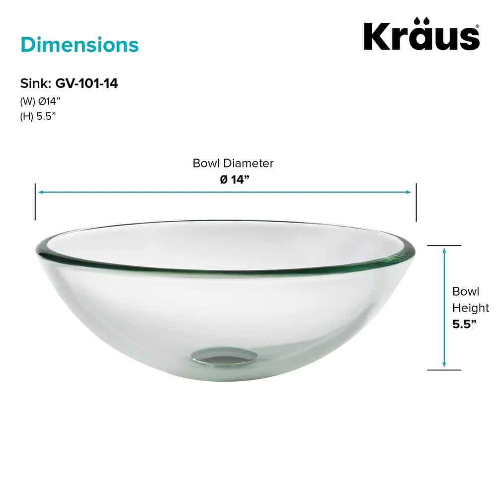 Add a touch of elegance to your bathroom with a KRAUS clear glass vessel sink. Handcrafted from tempered glass, this modern bathroom sink coordinates with a variety of decor styles. A freestanding basin design creates a dramatic look with contemporary appeal. The smooth, polished surface is beautiful and requires minimal maintenance to keep clean. This versatile sink can be installed above-counter for all your stylish bathroom ideas.