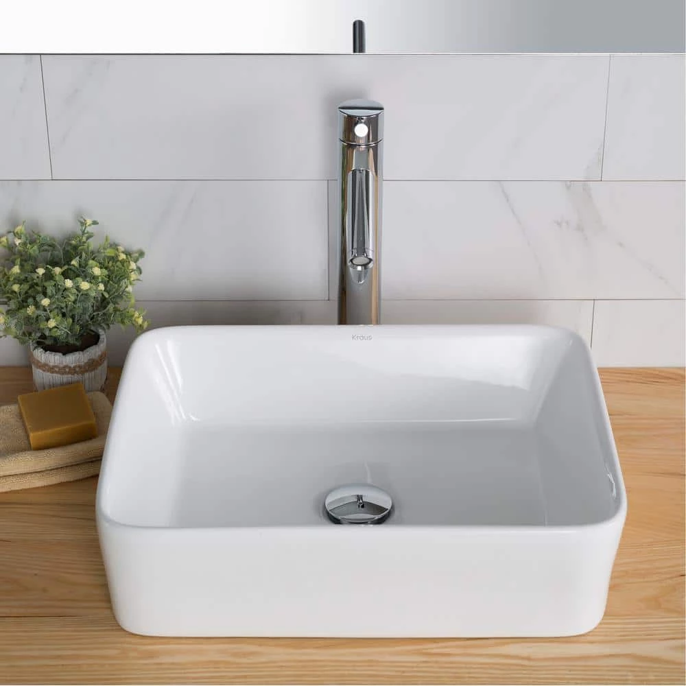 Update your bathroom with the clean look of a KRAUS Elavo Series ceramic sink. The versatile design features a premium baked-on glaze for a high-gloss finish that’s easy to clean. Complements any decor from classic to contemporary.
