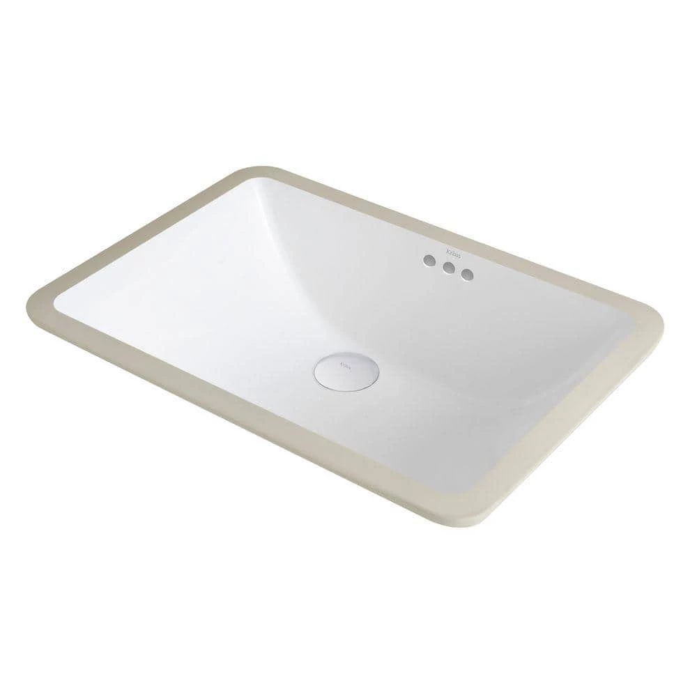 KRAUS Elavo Small Rectangular Ceramic Undermount Bathroom Sink in White with Overflow