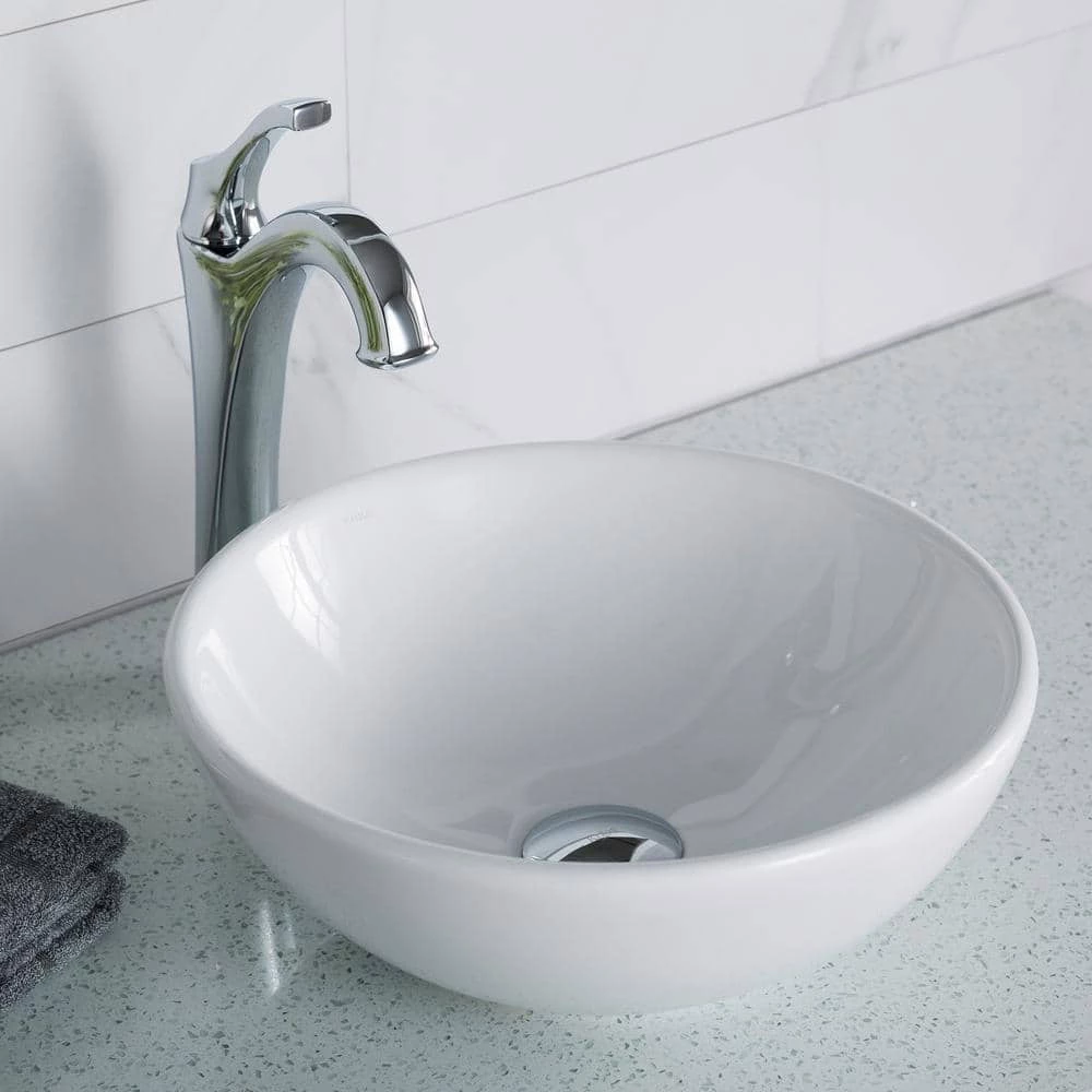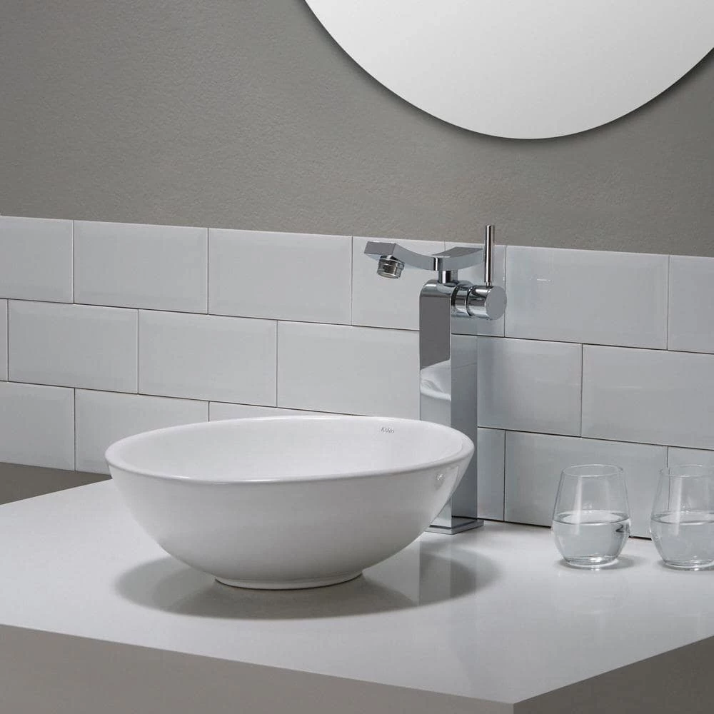 Update your bathroom with the clean look of a KRAUS Elavo Series ceramic sink. The versatile design features a premium baked-on glaze for a high-gloss finish that’s easy to clean. Complements any decor from classic to contemporary.