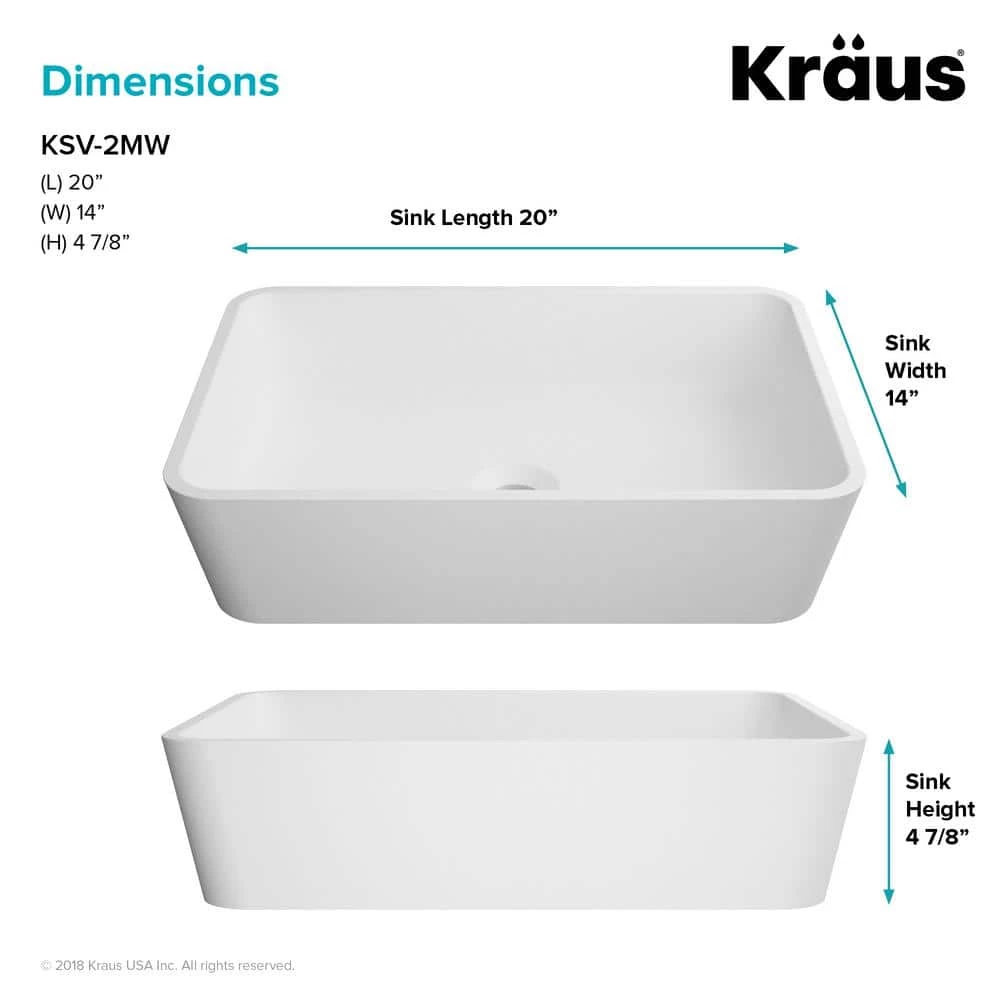 KRAUS Natura Rectangle Solid Surface Vessel Sink in White