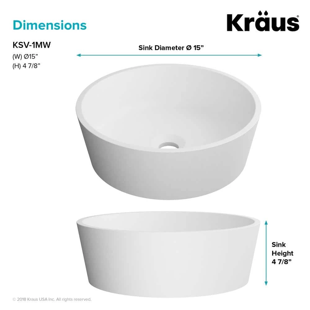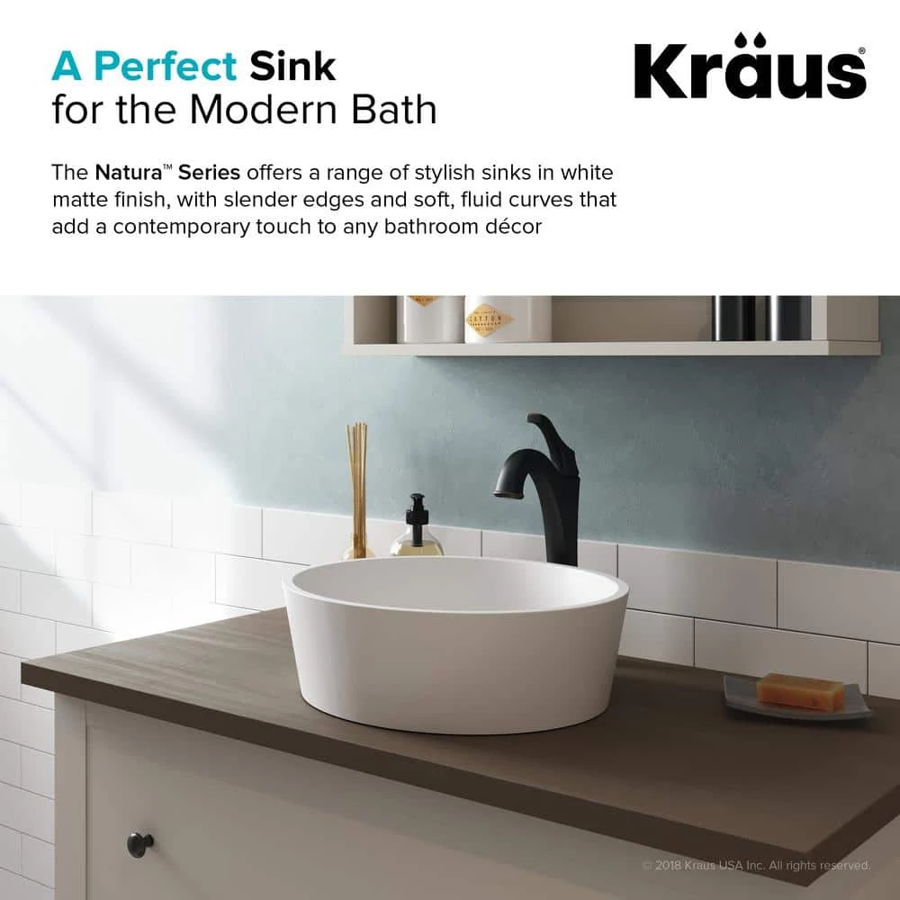 KRAUS Natura Round Solid Surface Vessel Sink in White