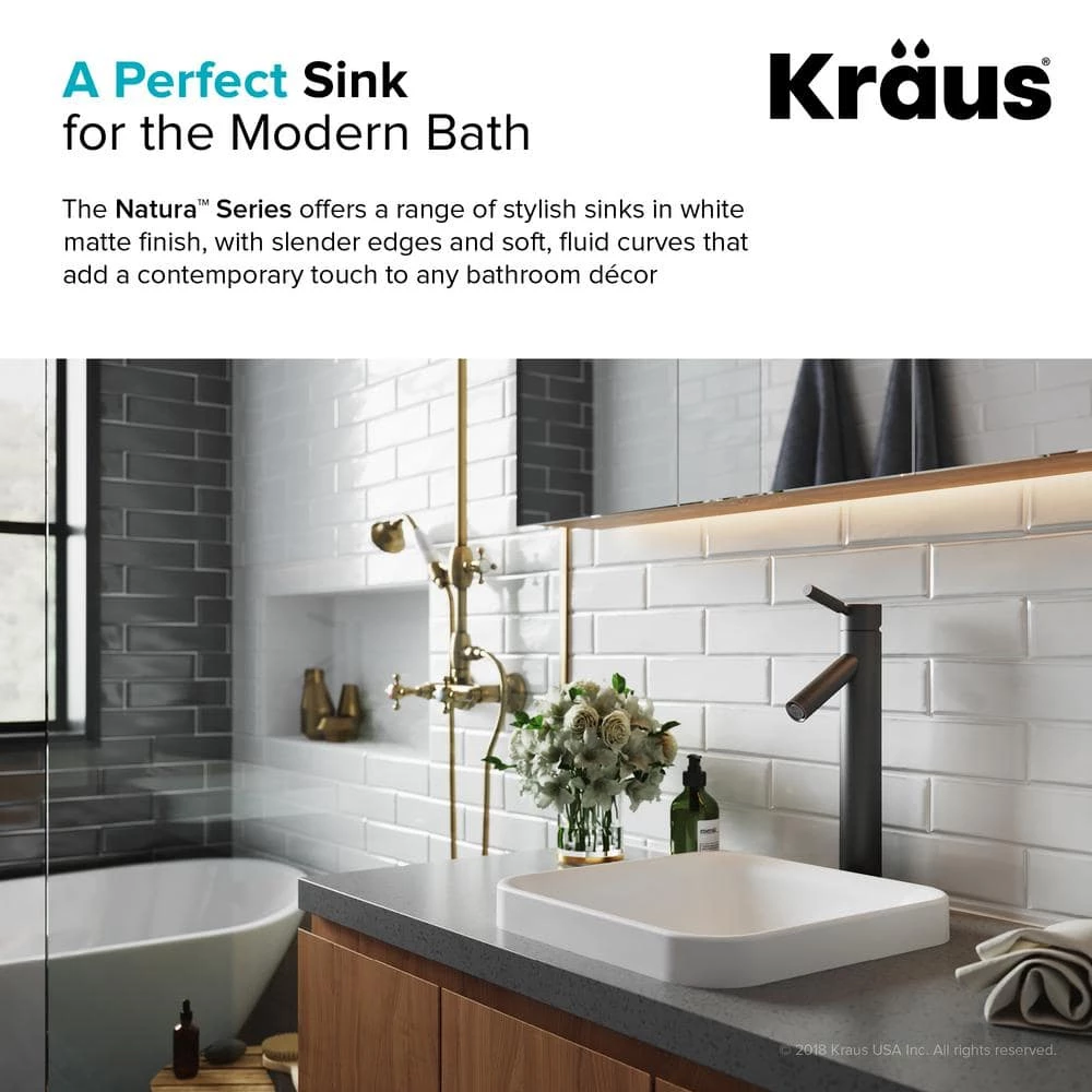 KRAUS Natura Square Solid Surface Semi-Recessed Sink Basin in White