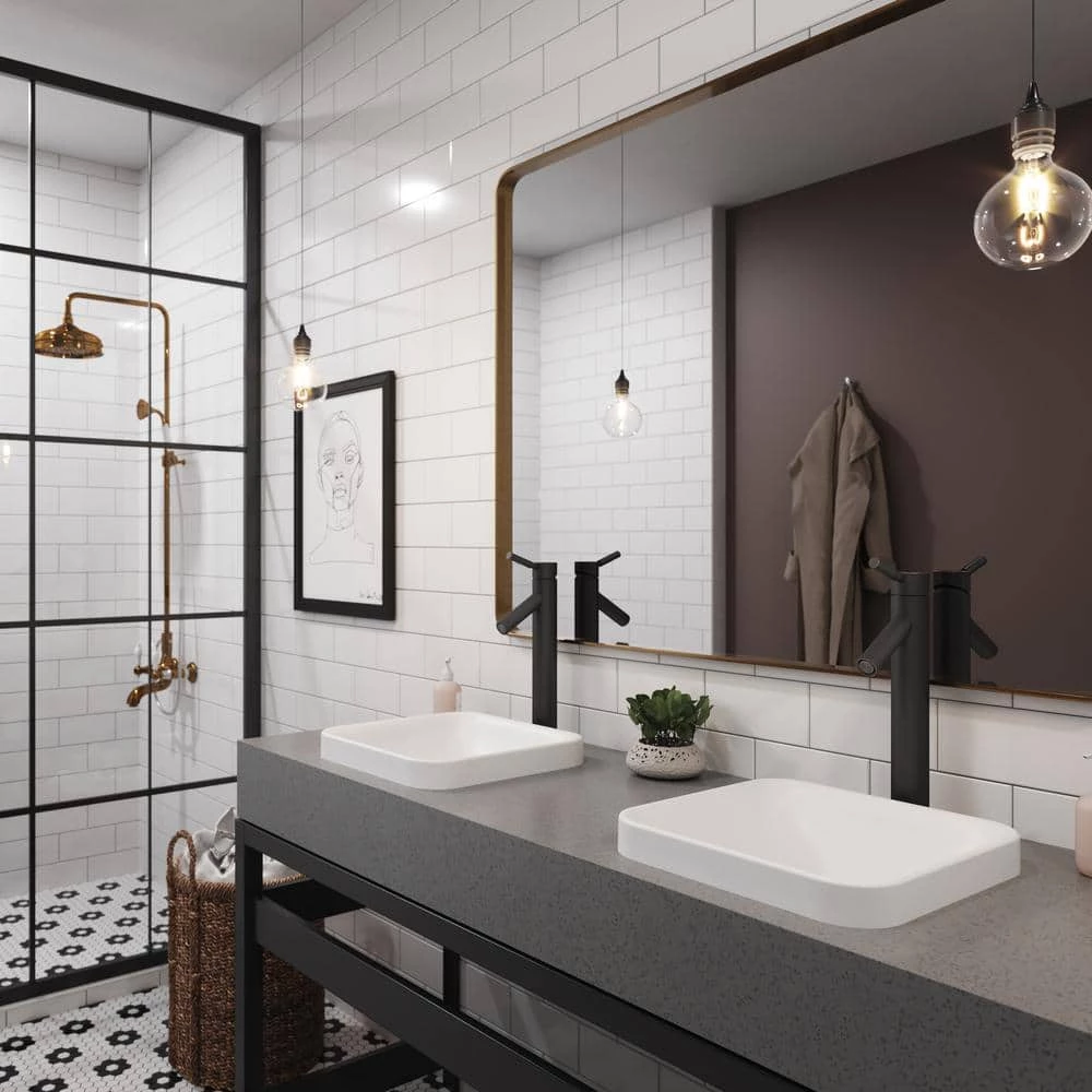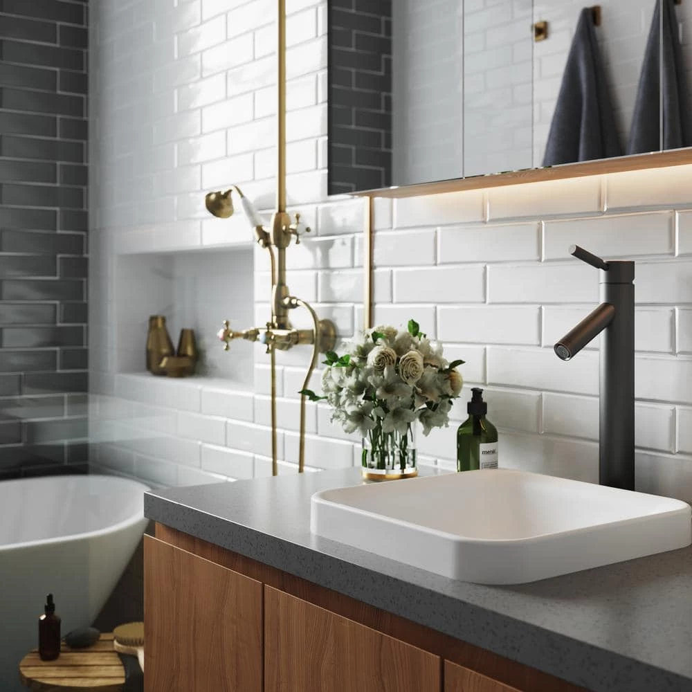 Semi-recessed installation provides extra bathroom counter space