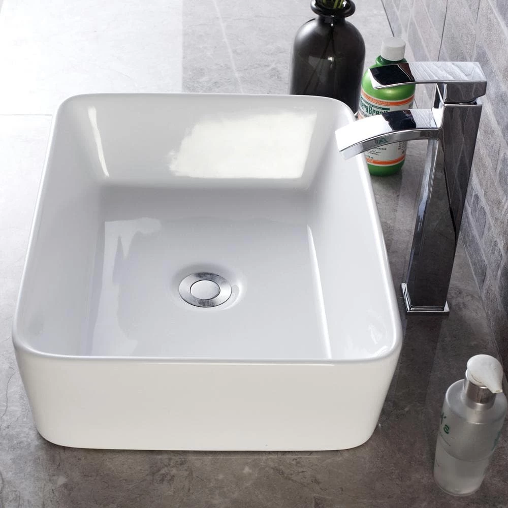 The white vessel sink to give the feel of elegance, without being decrepit. With a classic design, this sink is easy to show a simple, modern, and stylish life. Made of premium quality ceramic, lasting beauty, and exceptional durability. The smooth, non-porous surface of this ceramic sink is naturally durable and hygienic. It is perfect for home, hotel, spa, villa, restaurant, etc. use.