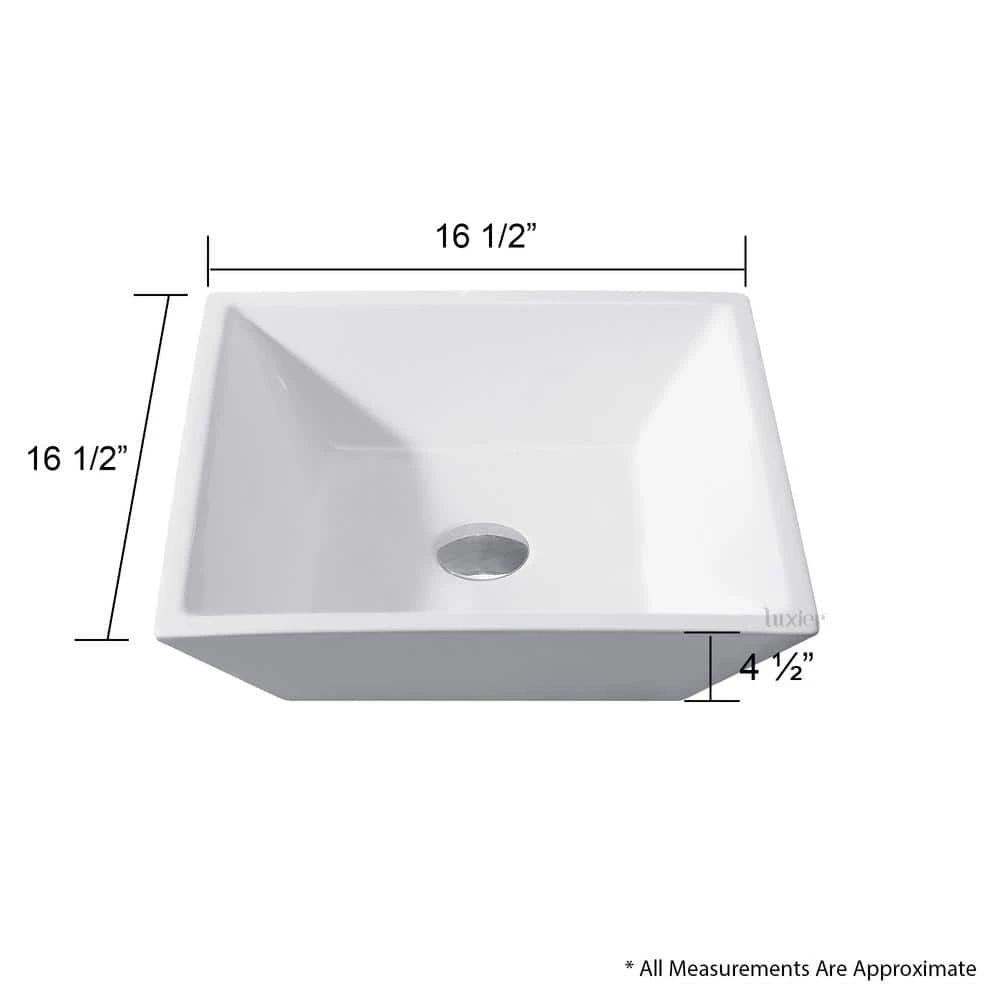 LUXIER Flat Square Bathroom Ceramic Vessel Sink Art Basin in White