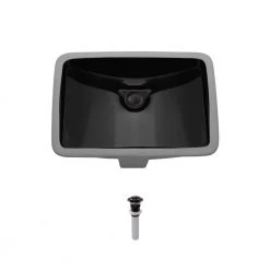 A glamorous example of porcelain’s functionality and durability shines in this rectangular, deep-bowl form. Designed to be undermounted, it has an offset drain which allows for more upfront room below the cabinet, and its overflow hole prevents excessive filling. The additional vitreous china coating on this model creates an even more impervious and sanitary surface than standard porcelain. With an overall measurement of 20-3/4 in. x 14-3/4 in. x 7-3/4 in. it will require a minimum-width cabinet of 24 in. Additionally, a spring-loaded, pop-up drain is included, which opens and closes with a simple press to its attractive antique bronze cap.