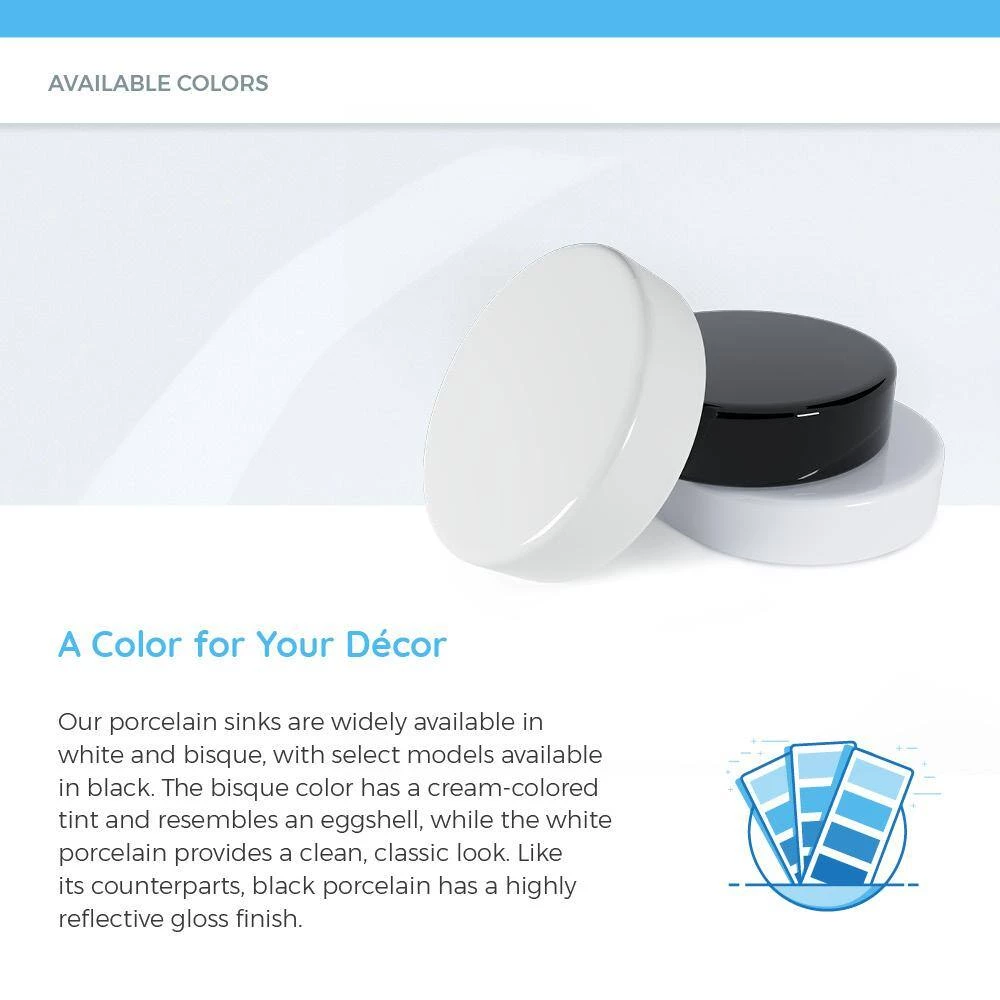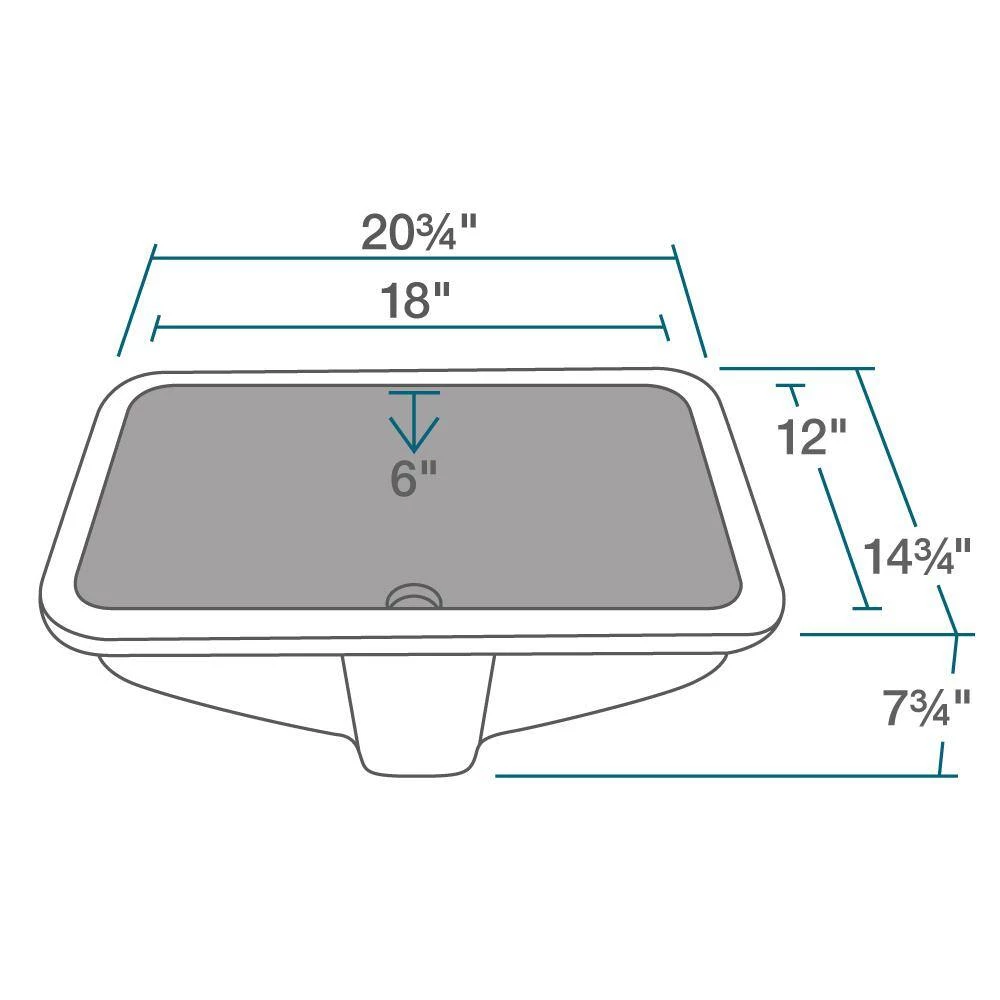 A glamorous example of porcelain’s functionality and durability shines in this rectangular, deep-bowl form. Designed to be undermounted, it has an offset drain which allows for more upfront room below the cabinet, and its overflow hole prevents excessive filling. The additional vitreous china coating on this model creates an even more impervious and sanitary surface than standard porcelain. With an overall measurement of 20-3/4 in. x 14-3/4 in. x 7-3/4 in. it will require a minimum-width cabinet of 24 in. Additionally, a spring-loaded, pop-up drain is included, which opens and closes with a simple press to its attractive chrome cap.