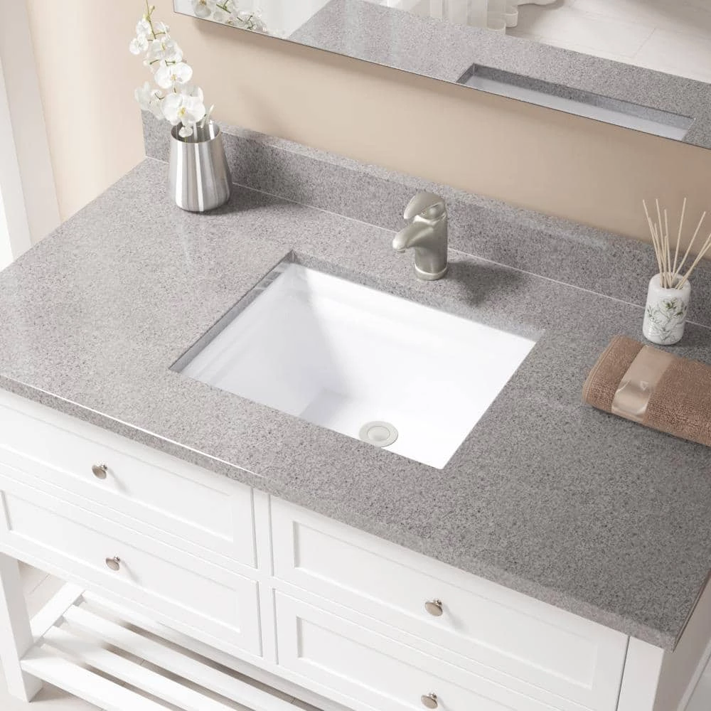 - Undermounting – installation below the vanity top provides trending, contemporary styling