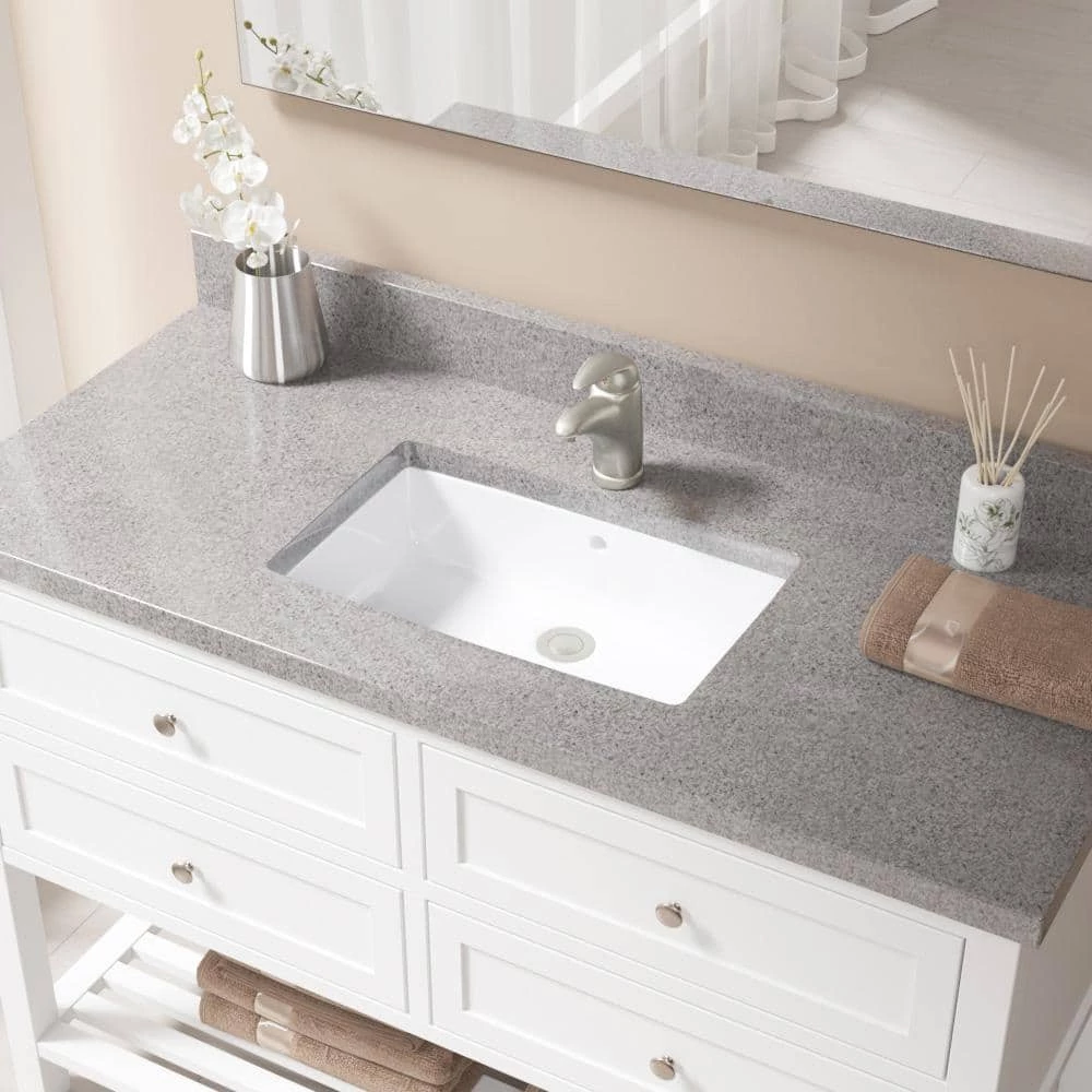 MR Direct Undermount Porcelain Bathroom Sink in White with Pop-Up Drain in Brushed Nickel