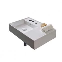 From the Italian designer Scarabeo, this white ceramic sink is part of the Teorema 2.0 collection. Available in 3 hole application and equipped with plenty of counter space. It is functional as a wall mounted or vessel application and is perfect for the modern bathroom design.