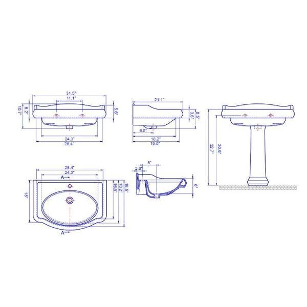 Traditional 31.5 in. W rectangular pedestal sink. Available in 1 hole option, this sink is perfect for traditional bathrooms. Sink is made of ceramic and includes an overflow. Made and designed by high-end and well known Turkish brand CeraStyle.