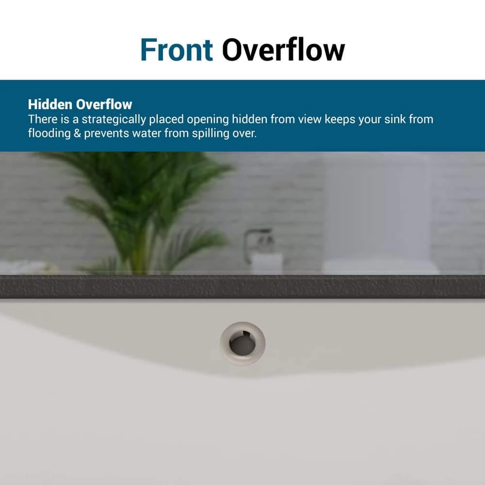 - Front Overflow: There is a strategically placed opening hidden from view that keeps the sink from flooding and overflowing.