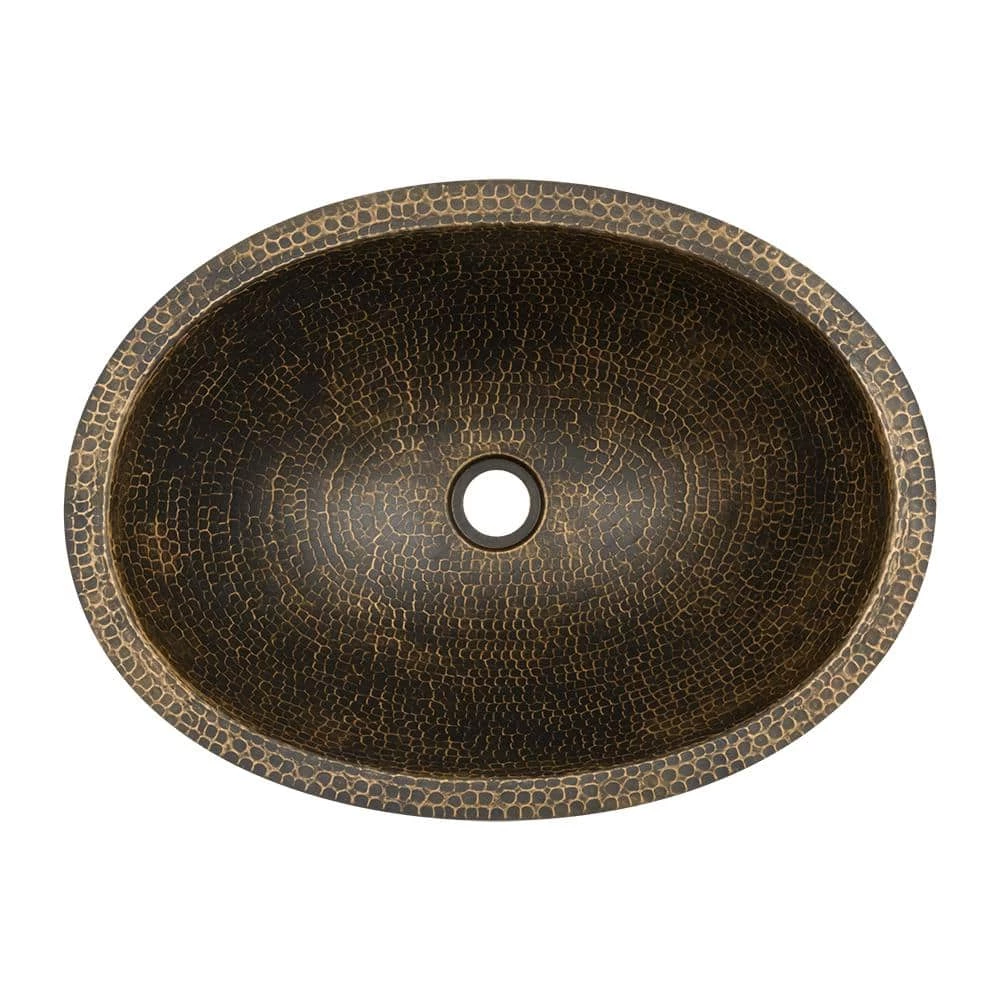 Premier Copper Products 19 in. Under Counter Oval Hammered Copper Bathroom Sink in Antique Brass