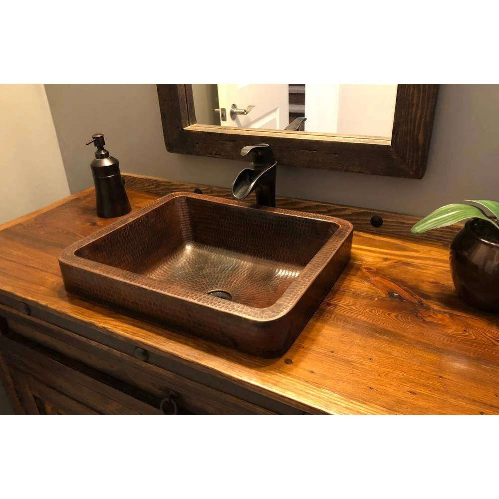 Premier Copper Products Rectangle Skirted Hammered Copper Vessel Sink in Oil Rubbed Bronze