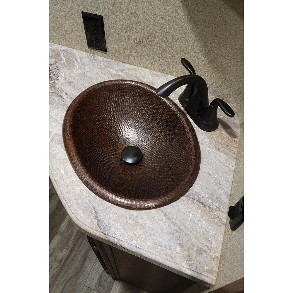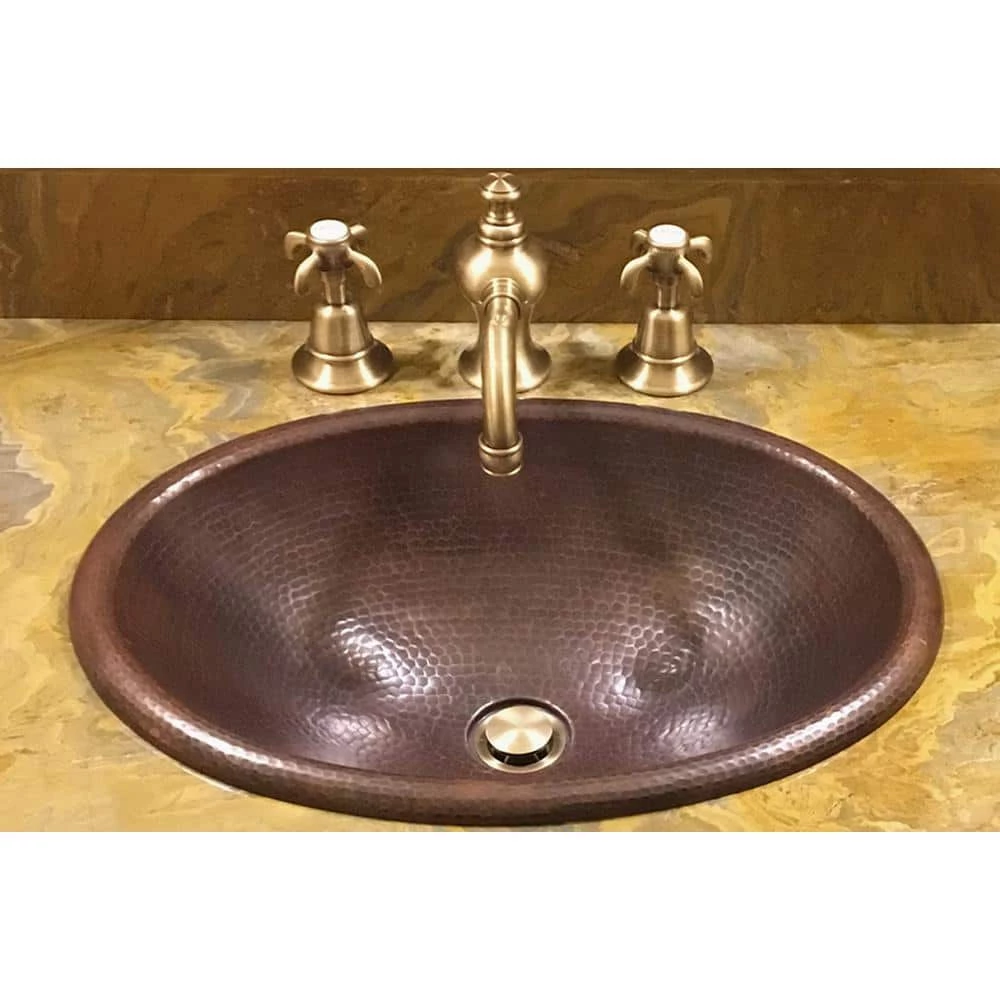 - 17″ Oval Self Rimming Hammered Copper Bathroom Sink