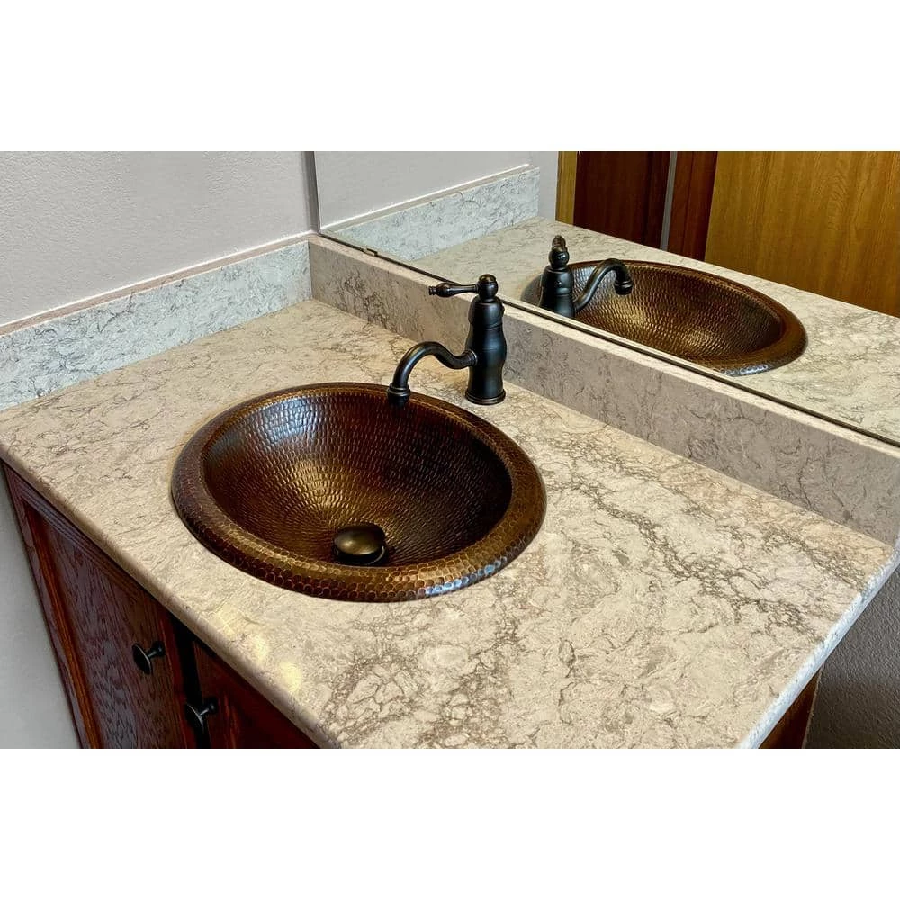 - 18″ Wide Rim Oval Self Rimming Hammered Copper Bathroom Sink