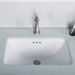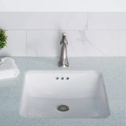 KRAUS Elavo Large Rectangular Ceramic Undermount Bathroom Sink in White with Overflow