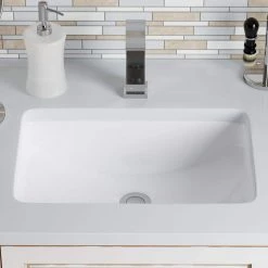 MR Direct Undermount Porcelain Bathroom Sink in White with Pop-Up Drain in Antique Bronze