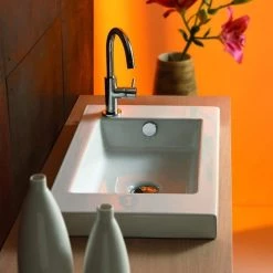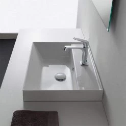 Nameeks Teorema Drop-in Bathroom Sink in White with 3 Faucet Holes