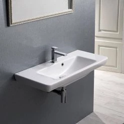Nameeks Seie 40 Wall Mounted Ceramic Vessel Bathroom Sink in White with 3 Faucet Holes