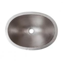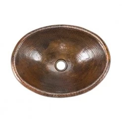 Premier Copper Products Self-Rimming Small Oval Hammered Copper Bathroom Sink in Oil Rubbed Bronze
