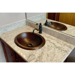Premier Copper Products Self-Rimming Round Hammered Copper Bathroom Sink in Oil Rubbed Bronze