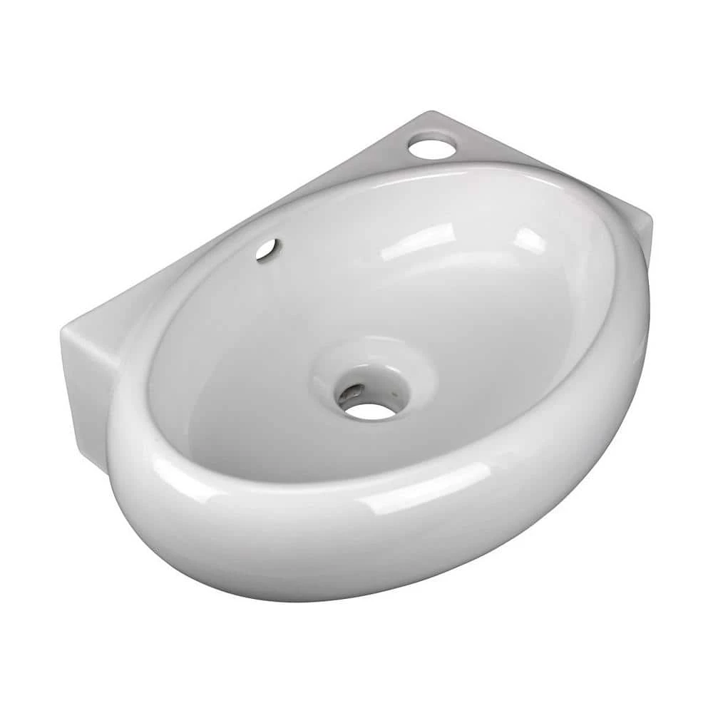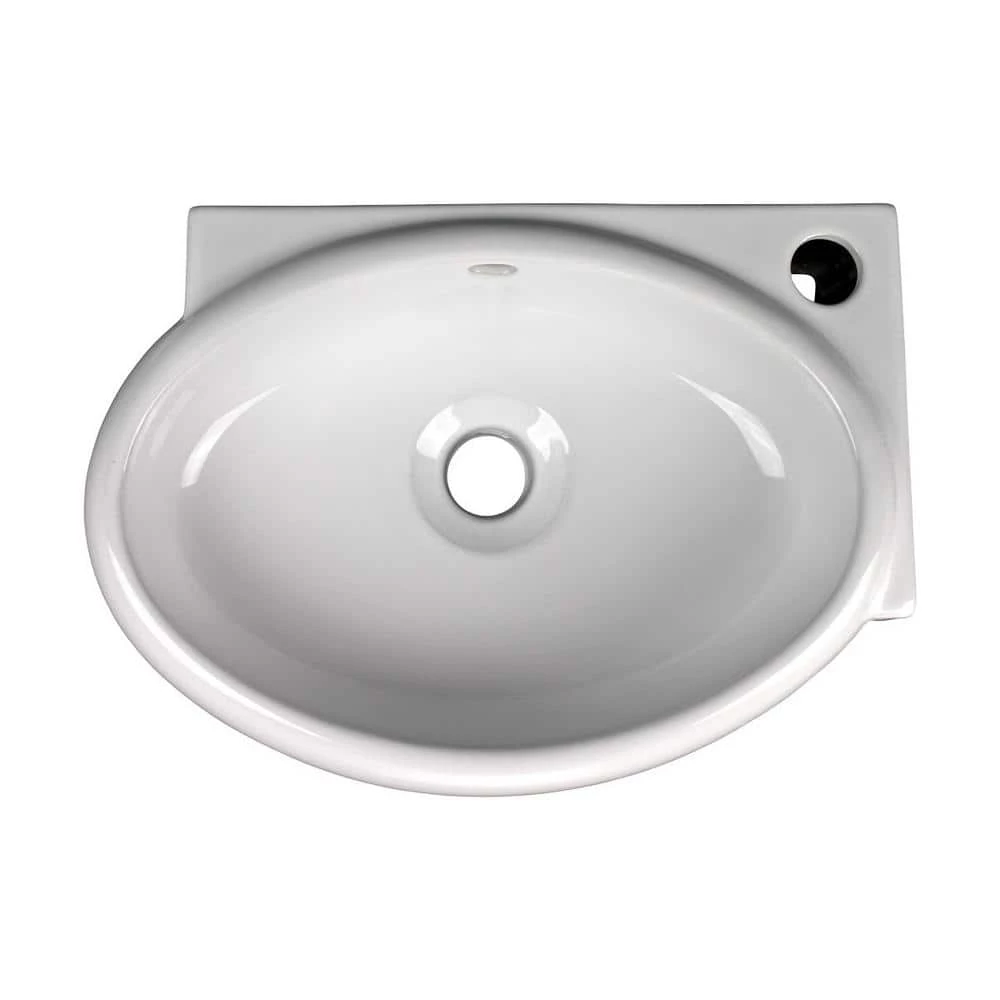 - STYLISH COMPACT SINK- The space saving corner design maximizes limited bathroom space with elegance. It includes both the overflow and faucet hole. Accepts a wide range of single hole faucets.