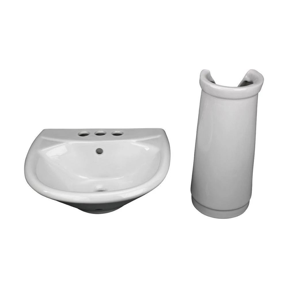 - DIMENSIONS – OVERALL WIDTH = 15.75 In., HEIGHT= 20.7.5 In., PROJECTION = 14 In., BASIN DEPTH = 5 In., PEDESTAL HEIGHT = 15.5 In., FAUCET HOLES = 3 Holes that accepts 4″ wide Centerset Faucets (not included).