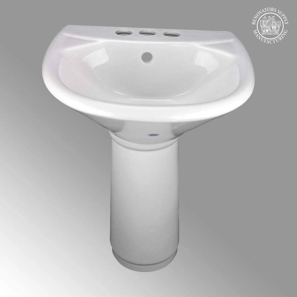CHILD SIZE TODDLER’S VITREOUS CHINA WHITE PEDESTAL BATHROOM SINK This ”Little Tykes’ Lav” mini pedestal sink from Renovators Supply Manufacturing features a sleek modern design and easy to clean Porcelain construction. While renovating your home, you cannot just ignore your kids’ requirements. You need to be extra careful in choosing the bath supplies for your kids’ needs and our Child-size Pedestal Sink is perfectly designed for such bathrooms. Letting children use sinks their size means fewer accidents, and the Porcelain pedestal sink’s small size and overflow hole keep those messy toddlers neat. FEATURES – Child Size White Pedestal Sink – Has a perfect height for toddlers – Scratch and Stain Resistant Reno-Gloss Finish – Constructed from gorgeous White Grade A Vitreous China Porcelain – Authentic Renovator’s Supply logo guarantees better quality than the knockoffs DIMENSIONS Overall: 20.75 Tall x 15.75 Wide x 14 Proj. Basin: 5 Deep HARDWARE- Accepts 4”Centerset faucet (not included) WHAT’S INCLUDED – Porcelain Sink – Pedestal Leg Support – Mounting Hardware GIFT YOUR KID SOMETHING THAT BUILDS THEIR PERSONALITY These Pedestal sinks can enhance the look of any bathroom, irrespective of the existing theme. They not only give an elegant look to the bathroom but also saves space for other treatments as well. These are the most preferred sink designs by home renovators, especially in white color.