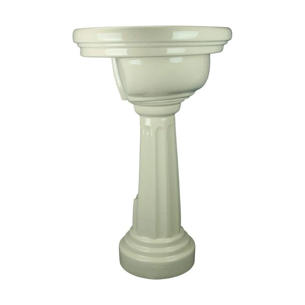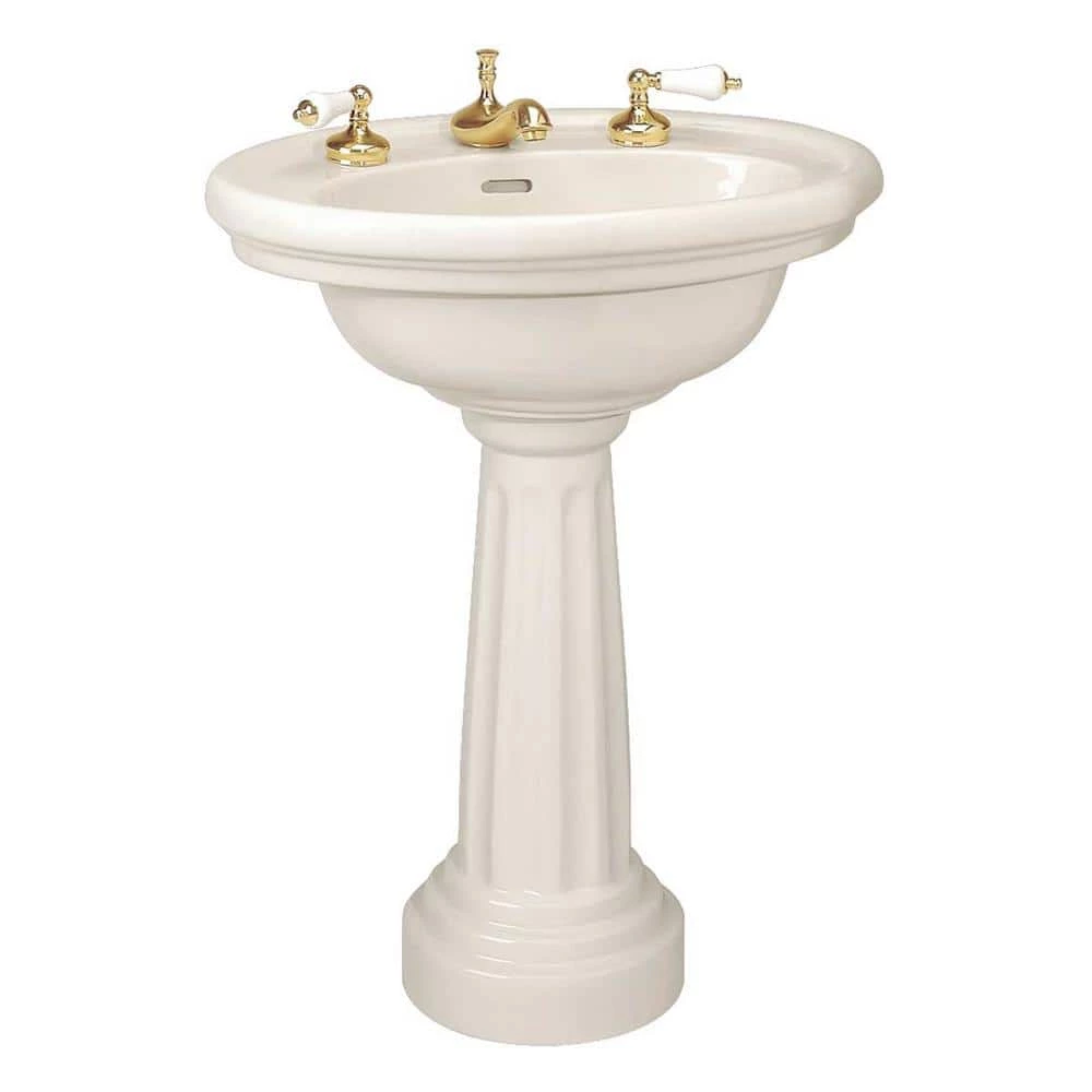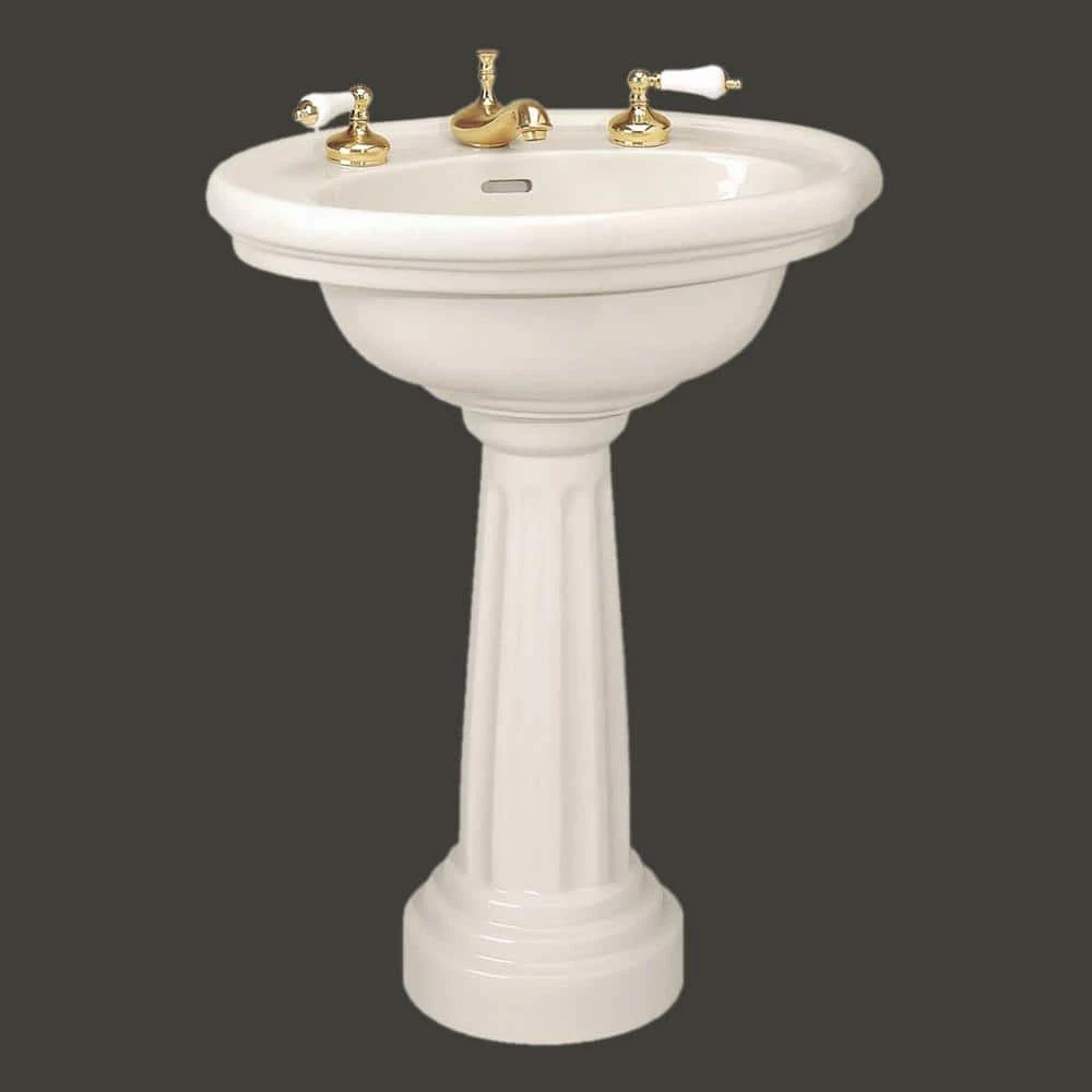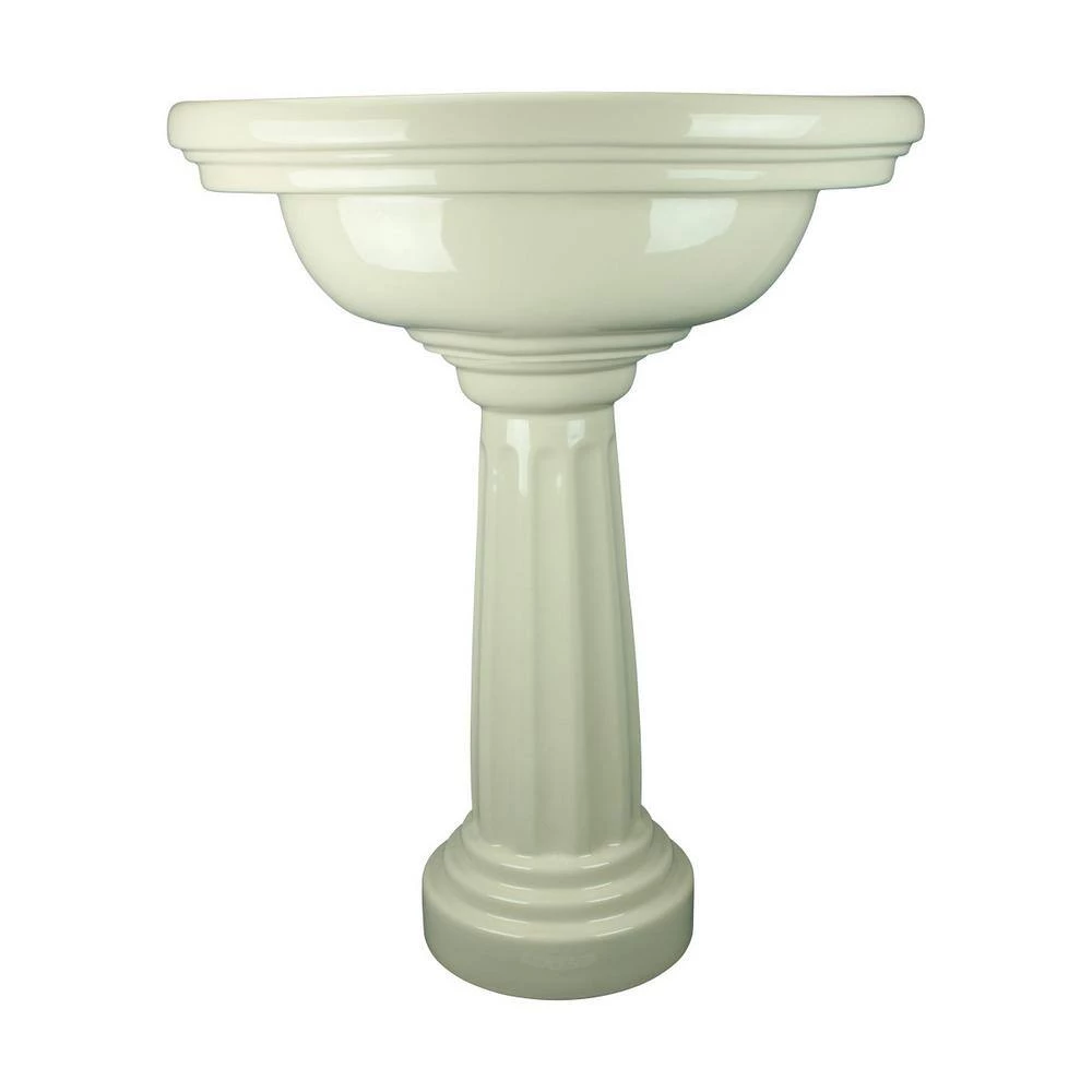 PHILADELPHIA BISCUIT GRADE A PORCELAIN PEDESTAL SINK The Classic Biscuit color Philadelphia pedestal sink from Renovators Supply Manufacturing features a luxurious wide top and bold design.FEATURES – This Traditional sink is a wide-top pedestal sink.- Open-back large pedestal sinks hide pipes and make installation a breeze.- Constructed from gorgeous Grade A vitreous china porcelain for durability and easy cleanup.- Reno-Gloss finish protects from scratches and stains.- Authentic Renovators Supply Manufacturing logo guarantees better quality than the knockoffs.- This bathroom pedestal sink is cUPC and ANSI Compliant- Freestanding installation style.- Convenient, large sinks and traditional bathroom design inspiration. OVERALL MEASUREMENTS – 32-1/4 In. Tall x 26-1/8 In.Wide x 19-3/8 In. Proj.,x 6-1/2 Deep. HARDWARE – Accepts an 8 In. widespread faucet (not included). – 1-3/4 In. drain hole (not included). PACK INCLUDES – One (1) Classic Philadelphia Porcelain Sink and Pedestal LegBUILT WITH LOVERenovators Supply Manufacturing Philadelphia Wall Mounted Oval Pedestal Sink is a mix of modern and traditional looks that brings a unique flair to any bathroom setting. All of these are carefully wrapped and packed separately to avoid any scratches during the transition – Buy with confidence!