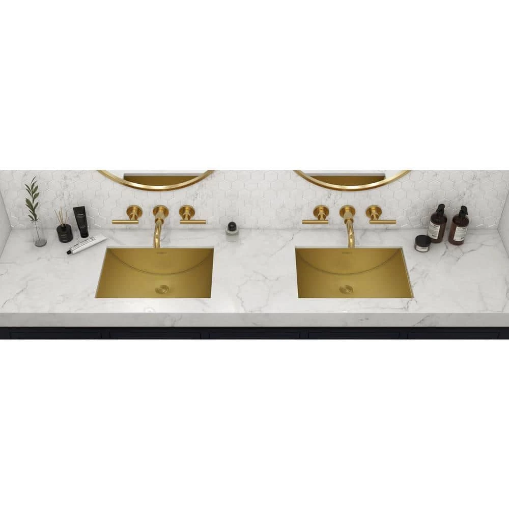 This modern stylish stainless steel sink will make your bathroom truly unique. Install it undermount with marble or granite countertop and you have the perfect harmony of steel and stone. Now available in multiple stainless steel finishes including gunmetal black and satin gold. The arc shaped bowl adds a modern touch to the sink and allows proper drainage. This sink will look great in both commercial and residential installations.