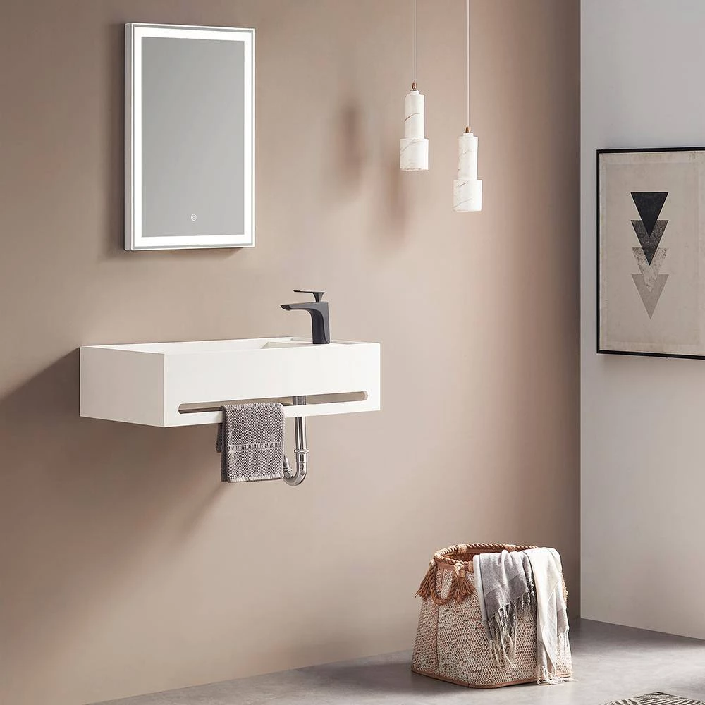 - SERENE VALLEY floating bathroom sink SVWS604-24WH is made of premium solid surface material that is specially engineered to be a non-porous surface that easily resists the stains and scratches that you hate to see on a bathroom sink