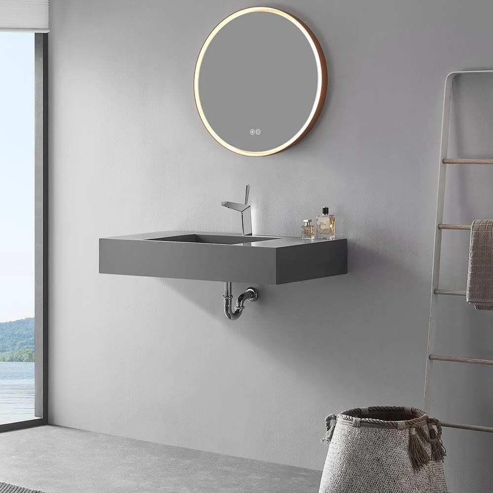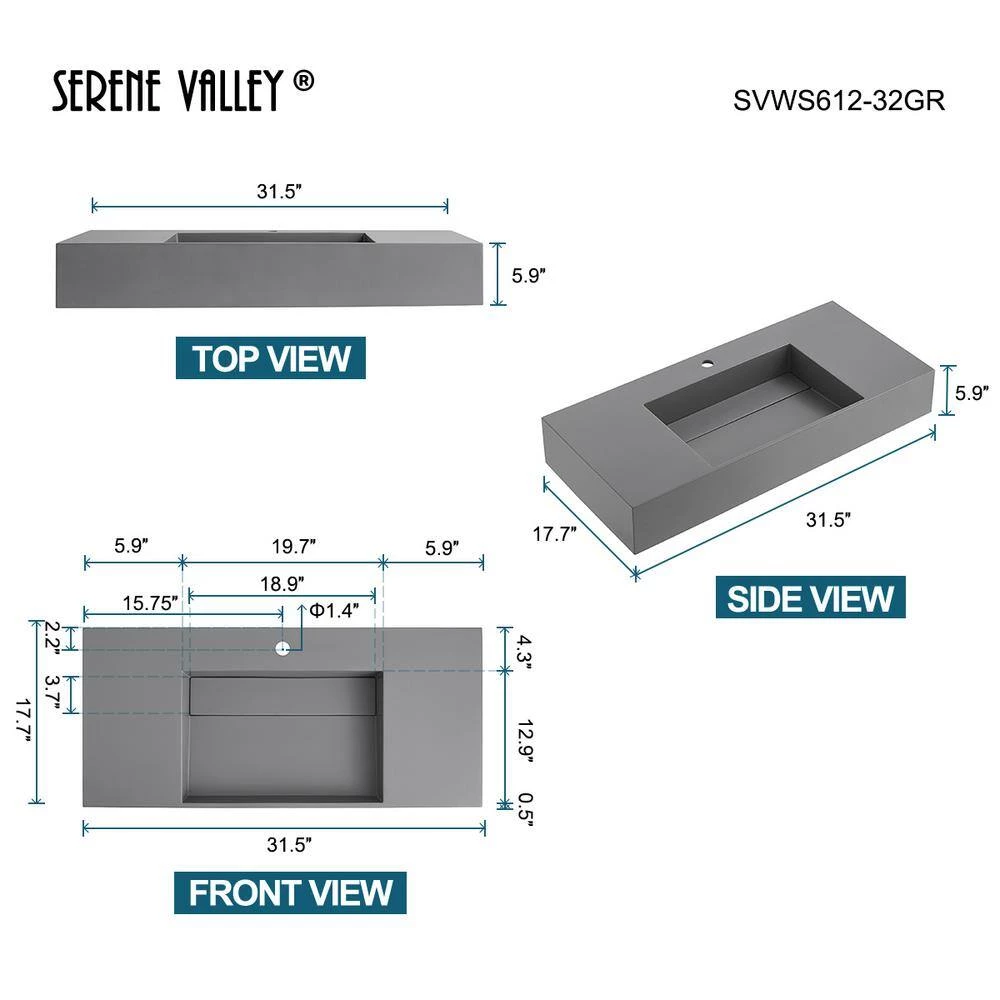 - SERENE VALLEY floating bathroom sink SVWS612-32GR is made of premium solid surface material that is specially engineered to be a non-porous surface that easily resists the stains and scratches that you hate to see on a bathroom sink