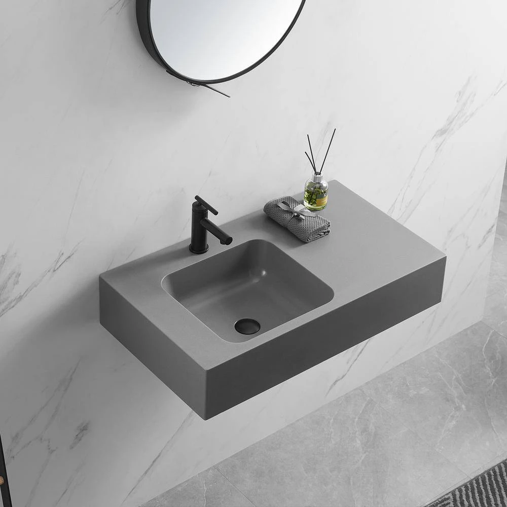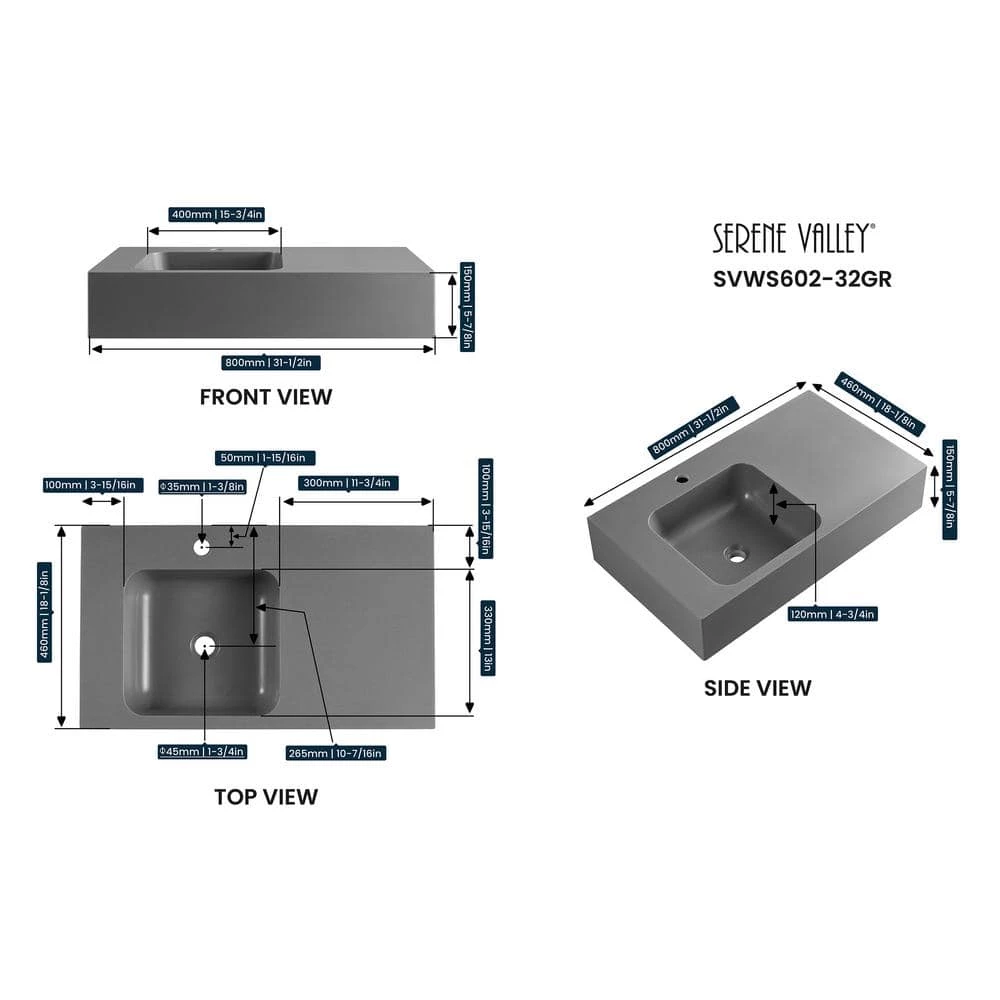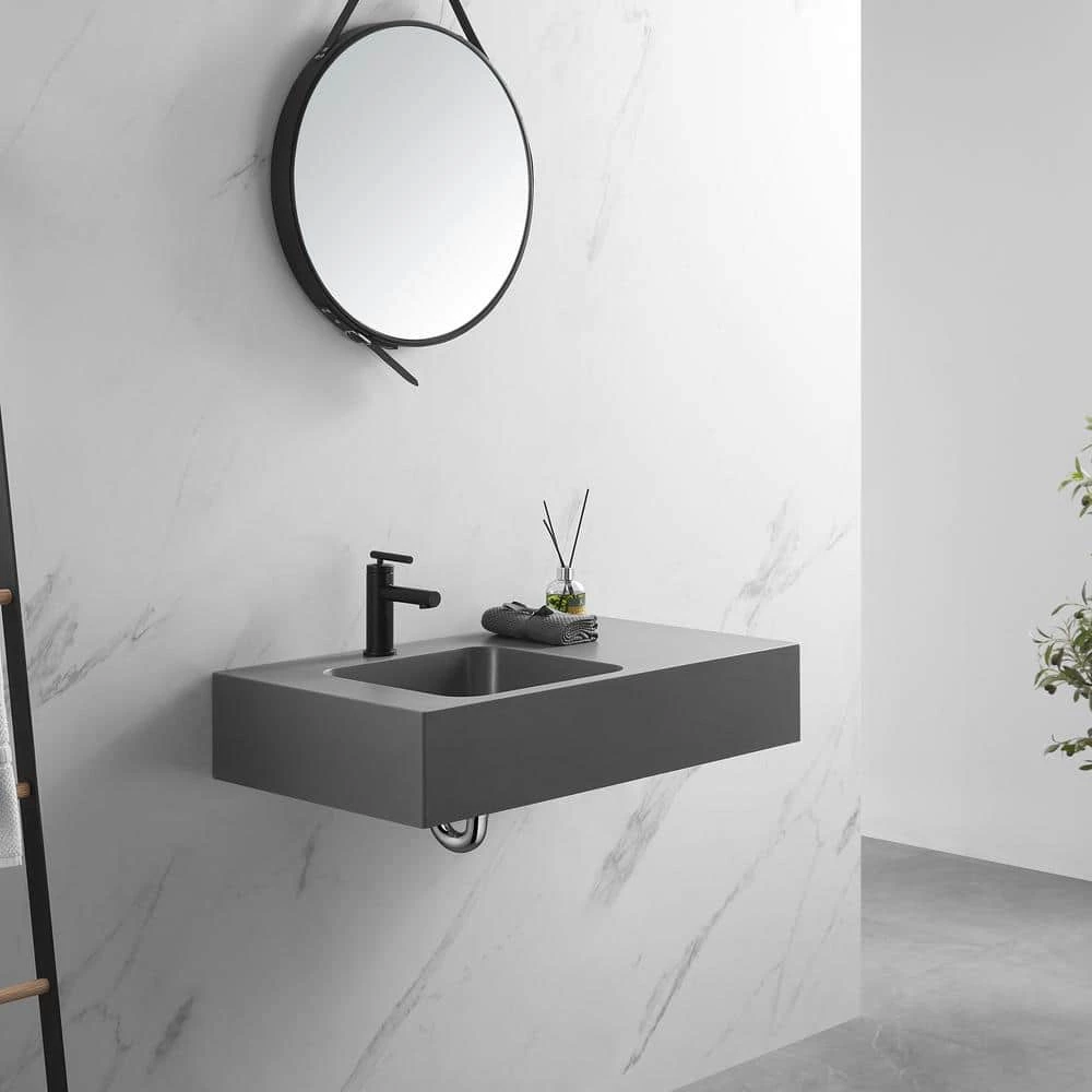 - SERENE VALLEY floating bathroom sink is made of premium solid surface material that is specially engineered to be a non-porous surface that easily resists the stains and scratches that you hate to see on a bathroom sink