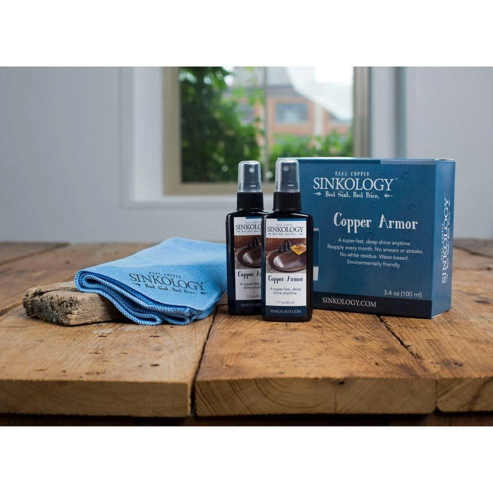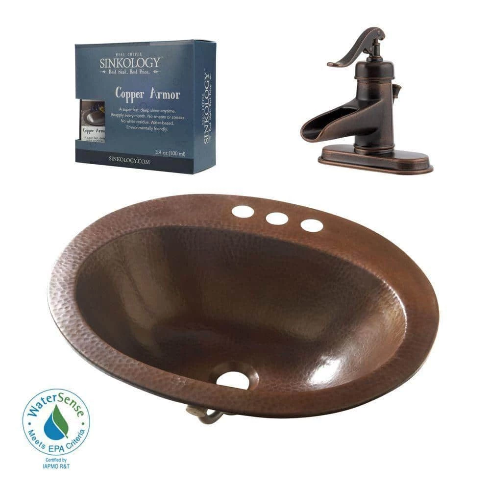 - Kit includes: copper sink, 4 in. center-set faucet, matching drain and copper armor care kit
