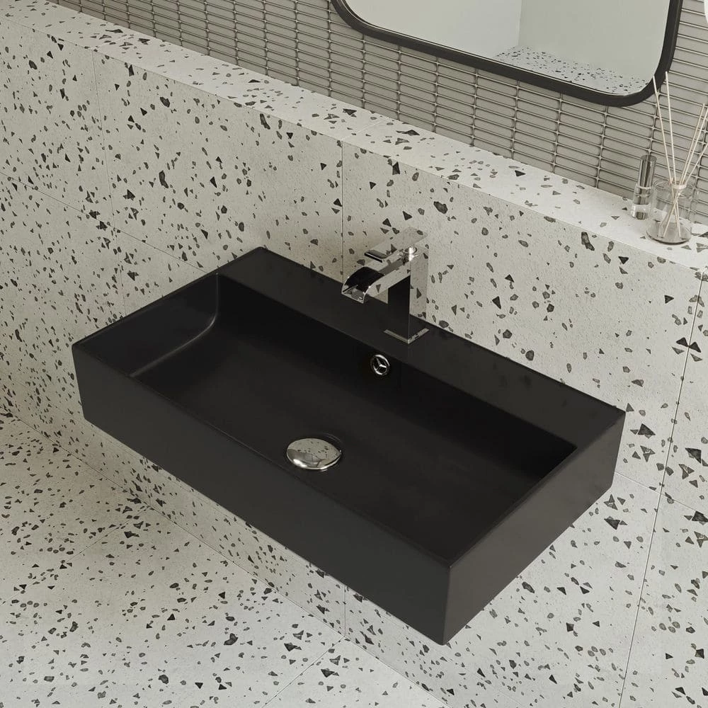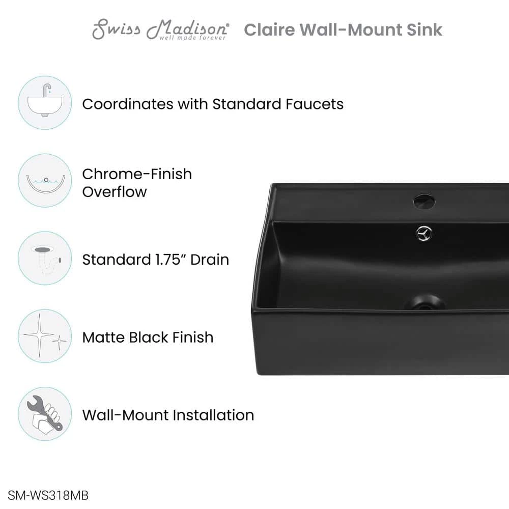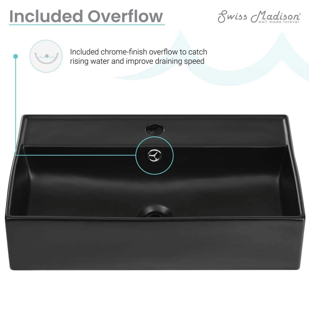 Swiss Madison Claire 22 in. Ceramic Rectangle Wall-Mount Vessel Bathroom Sink in Matte Black